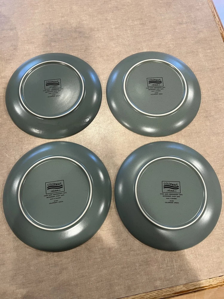 Add a touch of elegance to your holiday table with this set of four Noritake Colorwave Green salad plates. Featuring a festive white snowflake pattern on a backdrop of green, these round plates are perfect for serving your favorite salads or desserts. Made of high-quality stoneware, they are durable and easy to clean. The printed backstamp and product line of Noritake ensure that you are getting a reliable and stylish product. Ideal for Christmas or winter occasions, these plates will make a great addition to your decorative cookware, dinnerware, and serveware collection.