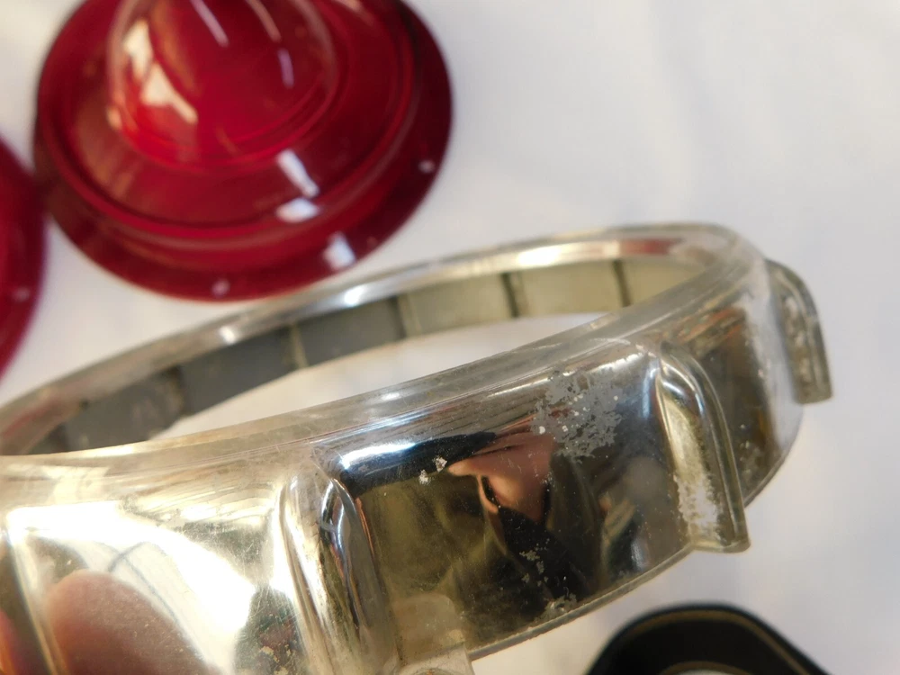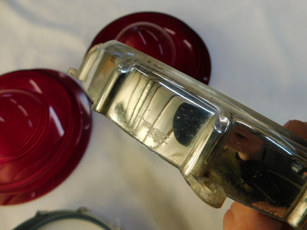 Up for auction is a NOS pair of Glo-Brite brand tail light lenses and bezels for a 1957 Ford or Thunderbird (for cars without backup lights). They are brand new Glo-Brite brand from back in the day and in nice condition with some minor rubs and imperfections as shown. One of the chrome bezels does have some more noteworthy imperfections than the other as you can see in the photos. Still a nice set of lenses and bezels for your old Ford, just not flawless . "Free Shipping" is to the continental US only but we can ship anywhere for an additional cost. Feel free to email me with any questions or if you need to get in touch with Greg you’ll have to be resourceful. stilwellsobsolete Evansville, Indiana. Thanks for looking. Box # 241202 Return Policy: Refunds will be granted for items returned within the specified time frame and will be subject to a 30% restocking fee (to cover original shipping and fees). An item must be returned in the same condition it left here and with its original box (where this applies). Any new item that upon return shows signs of use will not be eligible for a refund. If you anticipate having to return an item prior to purchase please ask questions to try and avoid the un-necessary sending of that item. Returns are not available for items sent internationally or freight items. Feel free to contact us if you have any questions. Thank you for reading this and for your understanding. PLEASE READ BEFORE BIDDING... NOS, or new old stock does not mean the part is mint or even perfect! We do not own or sell anything that is perfect. Ford Motor Company has always been in the business of building mass produced vehicles and parts, NOT show cars. When we describe something as being NOS that means it is new and has never been installed on a car. Any out of the normal flaws are mentioned and most times even pictured in the description so there should be no surprises, check our feedback. We try our best to accurately describe the parts we sell but we can and do make mistakes just like everyone else. If you have ANY doubts about the condition or application of the item being sold then please ask questions before bidding. If you plan on not being satisfied with an item or do not have the means to pay for it then please do not bid. Thank you for reading this and for your understanding.