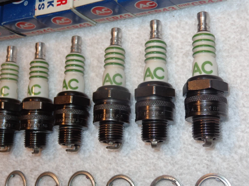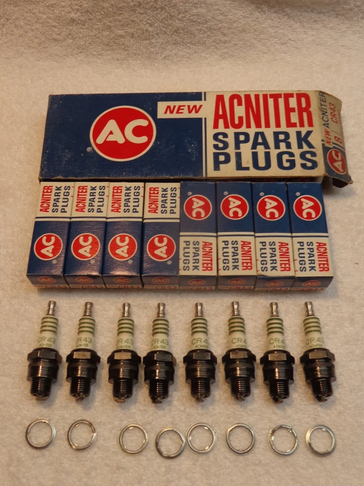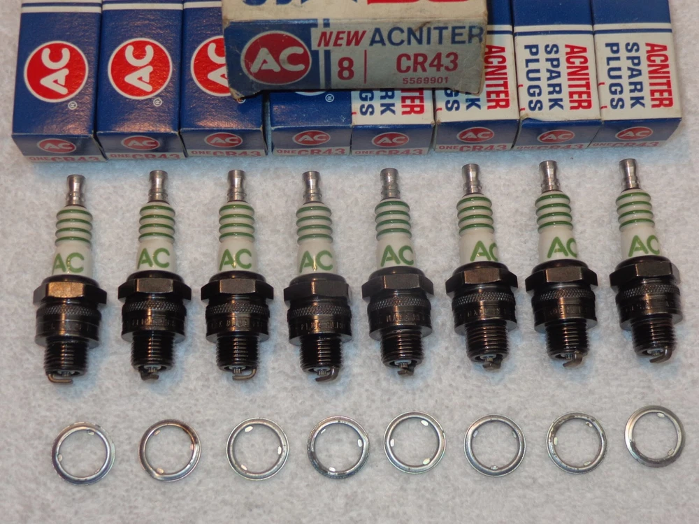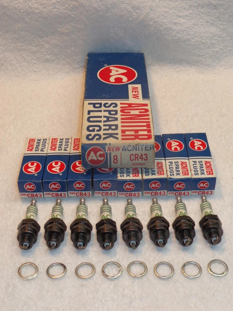 WARNING : Any copying, pasting, reproduction, likeness, similarities..... etc. of “all” or “any part” of this template listing will immediately be documented and reported to eBay as a violation of their policy . (8) AC-CR43 Spark Plugs ‘ Acniter’ .....GM # 5569901 These are Vintage Spark Plugs with the 4 equal Green Rings sweetventidk1989sweetventidk1989sweetventidk198 these are assembly line with (1969-1970 Chevy Truck). They are all New ‘NOS’, were made in the USA, have never been used, and have no rust ! They have been out of production for many years and are harder and harder to locate. What are the differences between the AC- CR43 vs. AC-R43? (CR-43 = Commercial Grade). The CR43 has heavy duty center and side electrodes. It’s made for the rigors and loads of a pickup truck. Both the CR43 and R43 have the same length, reach, 14mm threads, and heat range. I have sold these and other (C) Spark Plug equivalents to customers for years with no issues. Except for the beefier electrode size all the other physical specs are the same. See my last (4) photos for a comparison . Chevrolet Applications : (substitute spark plug) * Camaro sweetventidk1989 Z-28 sweetventidk1989sweetventi dk1989sweetventidk1989 sweetventidk1989sw 1967 & 1968 sweetventidk1989 w/ sweetventidk1989 302ci. Camaro sweetventidk1989 Z-28 sweetventidk1989sweetventi dk1989sweetventidk1989 sweetventidk1989sweet 1969 sweetventidk1989 w/ sweetventidk1989 302ci. Camaro sweetventidk1989 Z-28 sweetventidk1989sweetventi dk1989sweetventidk1989 sweetventidk1989swee 1970 sweetventidk1989 w/ sweetventidk1989 350ci sweetventidk1989 360hp 89 Corvette sweetventidk1989 LT-1 sweetventidk1989sweetventi dk1989sweetventidk1989 sweetventidk19 1970 sweetventidk1989 w/ sweetventidk1989 350ci. ‘only’ w/special high performance LT-1 weetventidk1989 370hp *Factory assembly line was the ‘non-resistor’ spark plug AC-43, also available; Always check your tune up specification manuals to confirm the AC-CR43 is correct for your engine. My Vintage NOS Spark Plugs may be between 40-50 years of age. The boxes , which house the plugs, may show typical or various signs of shelf-wear as it is a paper product . However, when you open the inner boxes you will find your plugs, to truly be in, the real deal ‘NOS’ condition. If you have any questions or concerns before or after purchase please message me through eBay and I will promptly answer. Please message me with any questions or concerns before leaving feedback! I would like this transaction to be a positive experience for all! Thanks for looking and Happy Bidding / Buying! Shipping $12.50 USA Only, (All 50 States) includes delivery confirmation, tracking & insurance. For shipping outside of the continental USA please refer to eBay's automated International shipping fees. Insurance is included. If any car guys / girls have Spark Plugs, Ignition Parts or NOS you would like to sell, please message me through eBay. WARNING : Any copying, pasting, reproduction, likeness, similarities..... etc. of “all” or “any part” of this template listing will immediately be documented and reported to eBay as a violation of their policy . G.......Delco Wall cabinet