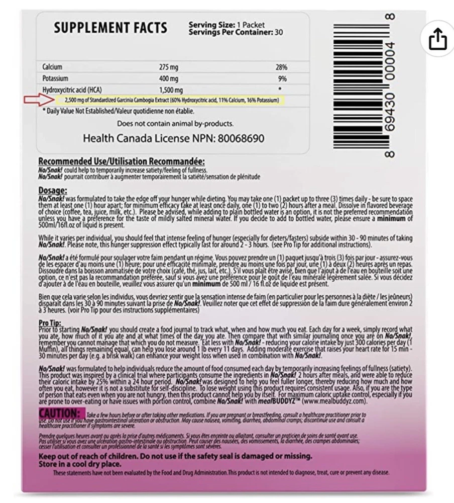 3X More Garcinia Cambogia Than Capsules - 7,500mg/d | Replaces 15 Humongous Capsules Daily, with Quick Dissolving Packets | Add to Any Beverage - Hot or Cold | Garcinia Cambogia Weight Loss NO SNAK! Unsweetened Appetite Suppressant for Intermittent Fasting Legal Disclaimer Statements regarding dietary supplements have not been evaluated by the FDA and are not intended to diagnose, treat, cure, or prevent any disease or health condition.