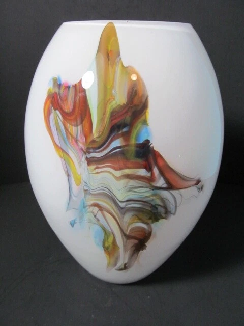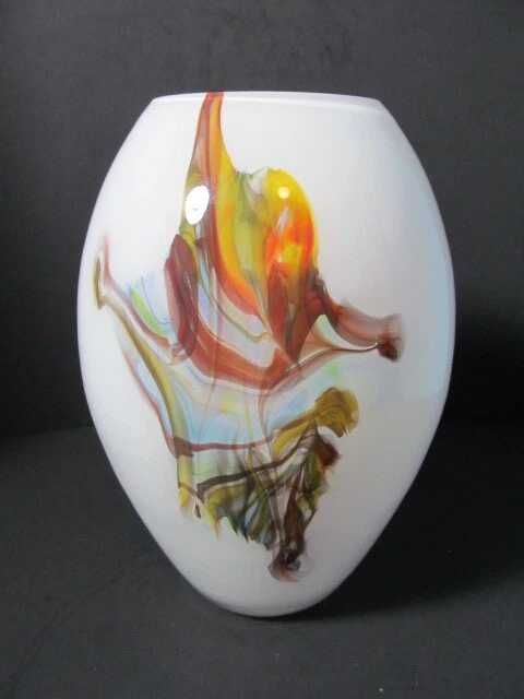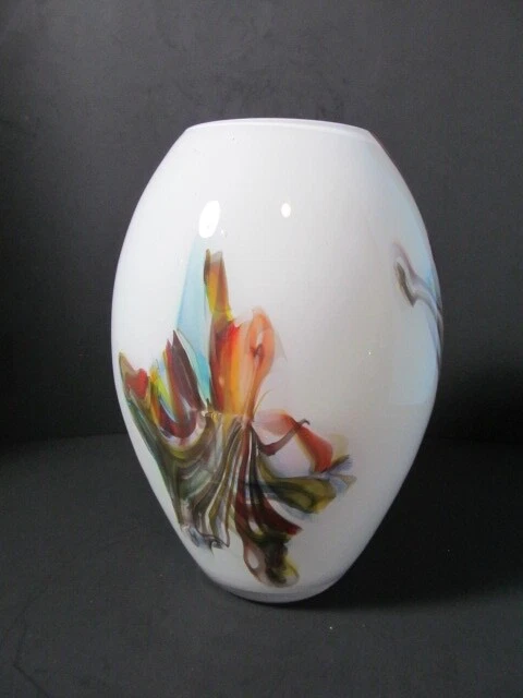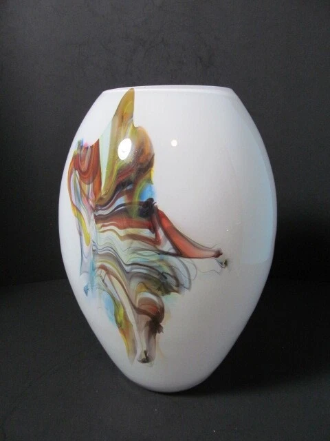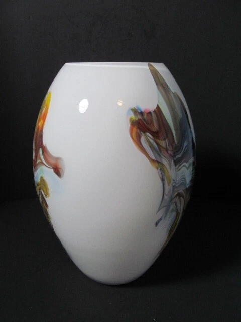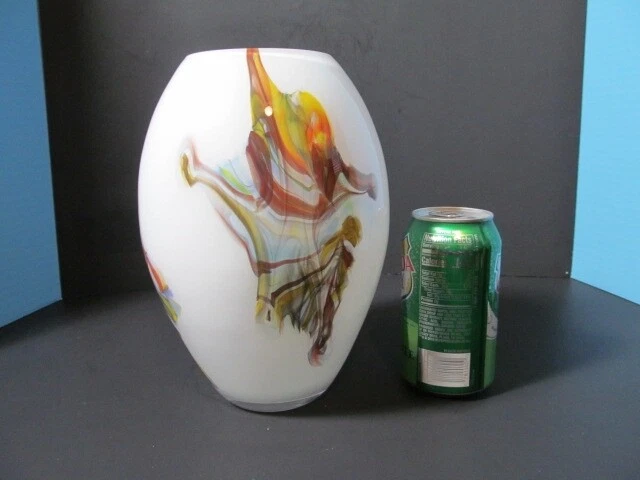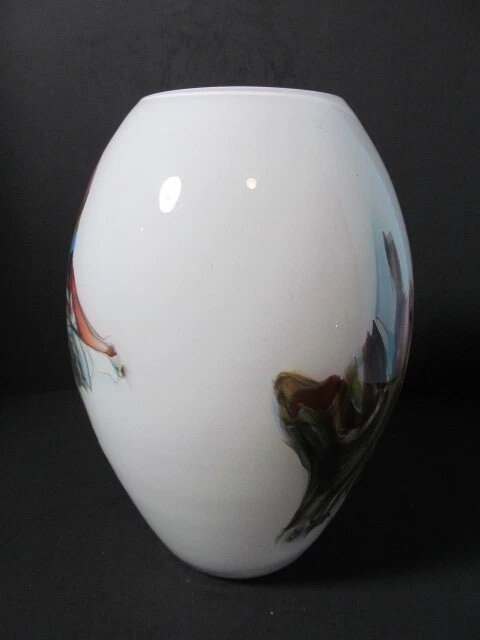 Welcome to Prettyeyes Gallery where we love fashion and antiques. And where we enjoy passing the savings on to you. Our item we have featured on this list is a NOVICA HAND BLOWN VASE WHITE WITH MULTI COLOR ABSTRACT ART GLASS 9"TALL Condition: Excellent Size: 9"Tall Any questions please contact us for further assistance. Shipping price includes handling and the global shipping program will handle shipping over seas.