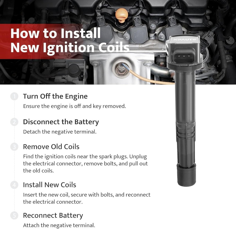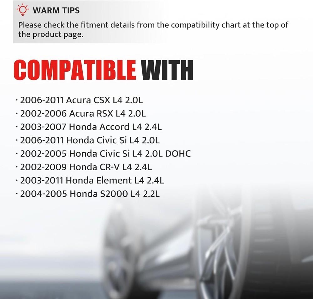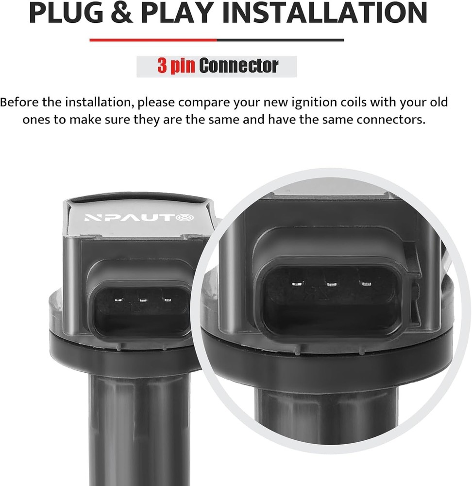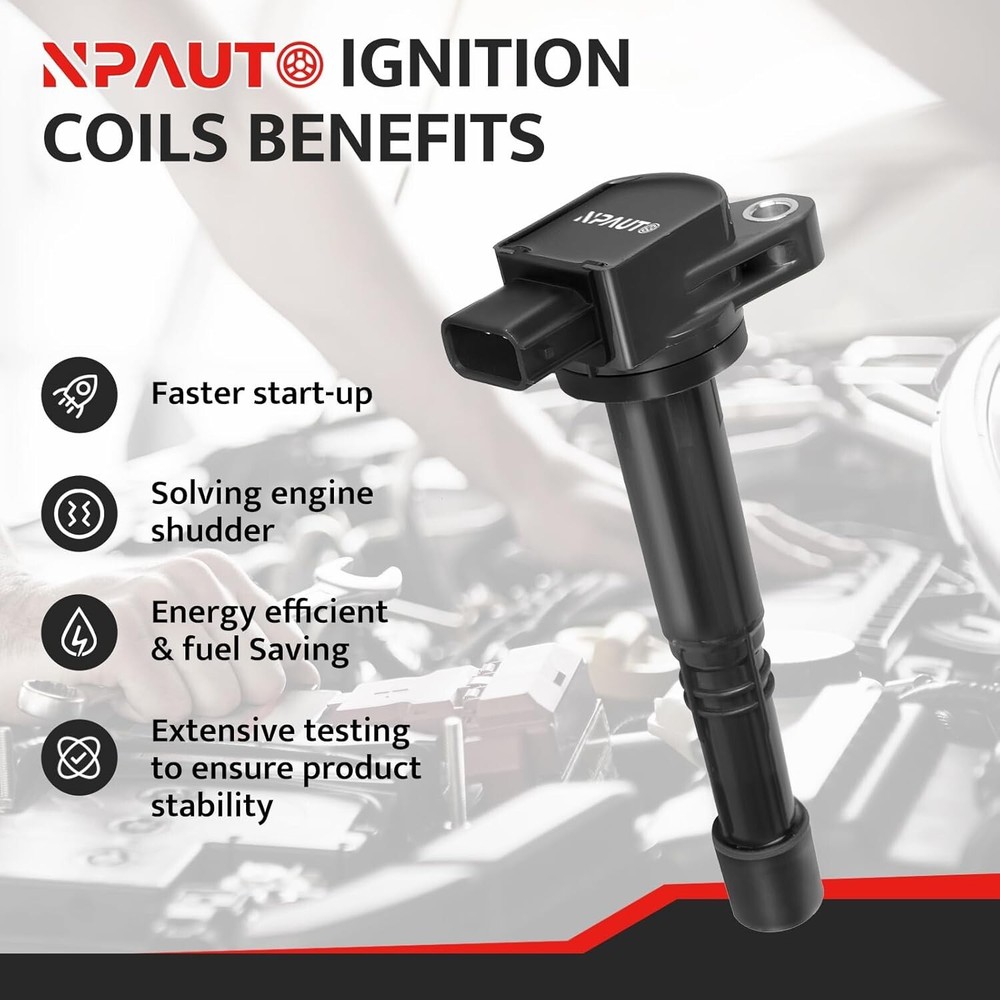 [Vehicles Fit] - Set of 4 Ignition coil pack replacement for L4 2.0L: 2002 2003 2004 2005 2006 2007 2008 2009 2010 2011 Honda Civic Si | 2006-2011 Acura CSX | 2002-2006 Acura RSX [Vehicles Fit] -Set of 4 Ignition coil pack replacement for L4 2.4L: 2003 2004 2005 2006 2007 Honda Accord | 2002 2003 2004 2005 2006 2007 2008 2009 Honda CR-V CRV | 2003-2011 Honda Element; L4 2.2L: 2004-2005 Honda S2000 [High Performance Aftermarket Ignition Coils] - NPAUTO Ignition coils which will right fit for your car. It can solve issues caused by failed coils like Engine Misfire, Rough Engine Idle, Decrease in Power, Poor Fuel Economy etc [Interchange Part Number] - UF311, 5C1382, UF-311, UF-583, C1382, C1423, C1574, UF583, 099700-070, 30520-PMA-007, 30520-PNA-007,30520RRA007, 30520PMA007, 30520PNA007, 30520PWA003, 30520RAA007 [Package Includes] - 4pcs ignition coils. Before the purchase, please check the Compatibility Chart of the listing to make sure the coils fit for your car [Quality Tested] - From internal coils to housing, quality materials are chosen to improve durability and reliability. And this part has undergone extensive testing to ensure a quality fit and long lifespan [Customer Service] -2-Year-Warranty. Please feel free to contact our customer service team for any concerns or problems