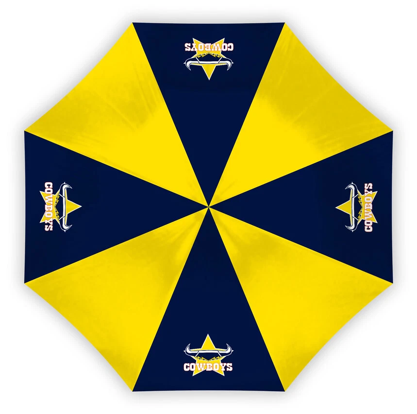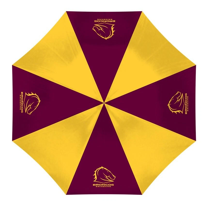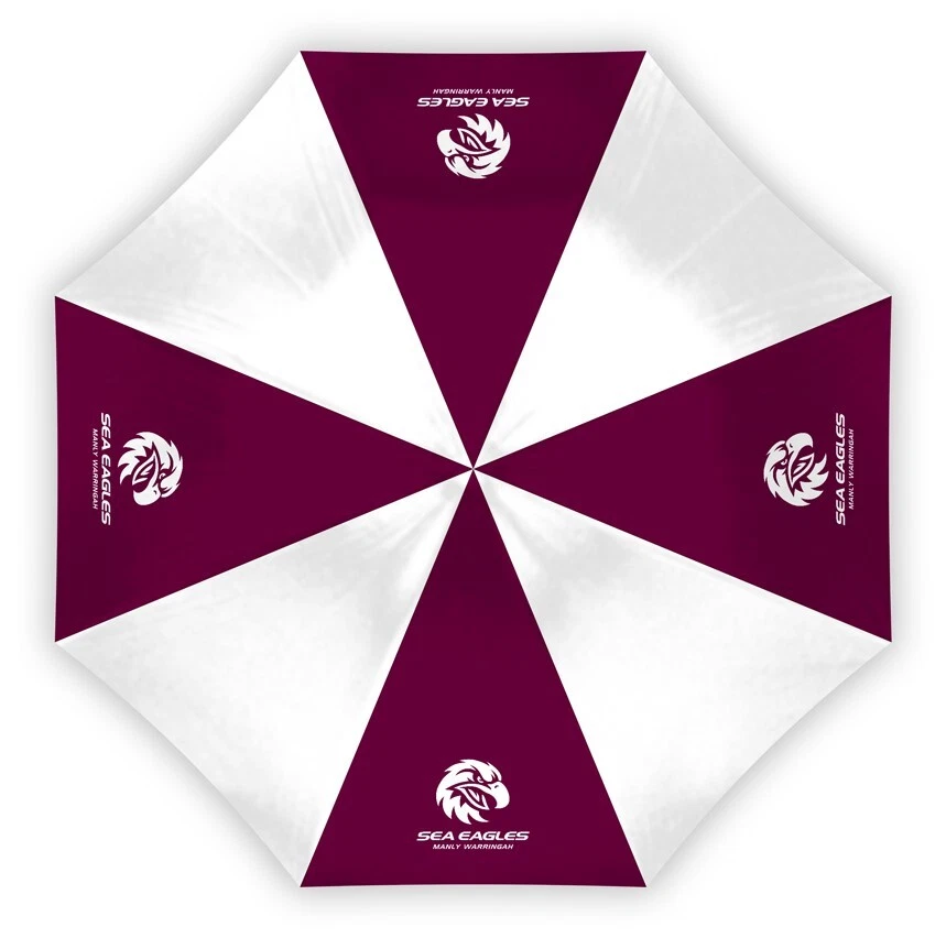 NRL Compact Umbrella with team logo and colours Protective sleeve with team logo and colours Approx. 60cm in Length W17cm Black Metal Shaft Official NRL Merchandise