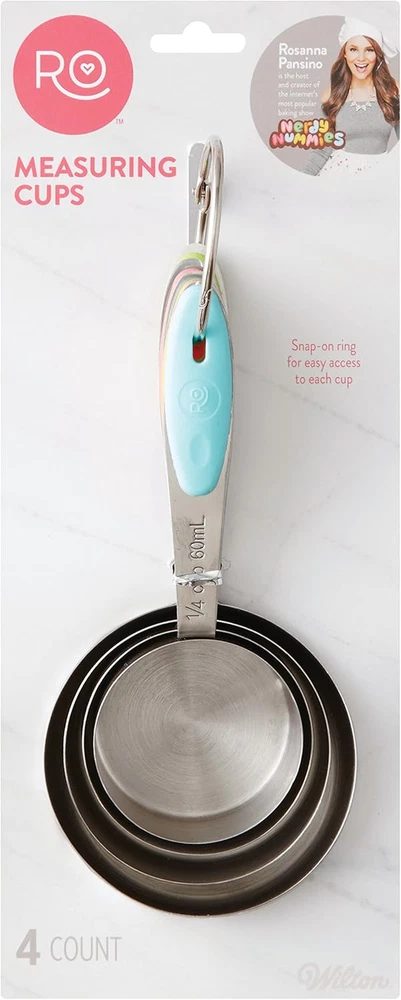 Store New Arrivals Add to Favorite View Feedback Contact N/S Rosanna Pansino Measuring Cups, Assorted Description Item model number 2103-1126 Item Weight 8.9 ounces Item dimensions L x W x H 1.84 x 3.25 x 6.99 inches Capacity 2.25 Cups Color Assorted Material Steel Global Trade Identification Number 00070896911261 Number of Pieces 4 Is Discontinued By Manufacturer No Product Dimensions 1.84 x 3.25 x 6.99 inches Measuring cup set features snap-on ring for easy access to each measuring cup Metal measuring cups are color coded for easy identification Color: Silver, lime green, coral, yellow and light blue Contains 4 cups: 1 cup, 1/2 cup, 1/3 cup, 1/4 cup Before first and after each use, hand wash in warm, soapy water; rinse and dry thoroughly with soft cloth Measuring dry ingredients is easy and fun with this Rosanna Pansino Measuring Cup Set. This set of metal measuring cups includes four cups: 1 cup, 1/2 cup, 1/3 cup and 1/4 cup. ABOUT US We offer the best prices around on high quality products. Our E-store includes media such as books, movies, music and games while offering electronics, toys, sporting apparel, clothing, tools, general home, garden items and more. SHIPPING We are always working hard to ensure your package arrives as soon as possible. Please understand that some factors like weather, high postal traffic, and the performance of shipping companies are outside of our control. We offer free shipping to the lower 48 states and ship within 2 business days of payment, usually sooner. We do not accept P.O. Boxes. Please provide a physical address. For shipping outside of the continental USA, we only use eBay's Global Shipping Program.The item is shipped to KY and then sent to the rest of the world. International customers are responsible for all duties and taxes. Continue to check out in order to calculate costs for shipping the item to your country. Messages regarding eBay's Global Shipping Program MUST be directed at eBay EXCLUSIVELY. RETURNS We offer a 30-Day Return Policy on items which you are not completely satisfied with. You have the option for a full-refund or an exchange of the item. No returns are available on items shipped outside of the USA. PAYMENT We accept PayPal. CONTACT US This page content is yet to come Please ad us to your favorite seller and visit again later Thank You CUSTOMER SATISFACTION We try our very best to make sure every customer is completely satisfied. If there's a problem, message us! We're happy to help. WE ACCEPT Copyright © 2021 AutoDS. | All Rights Reserved