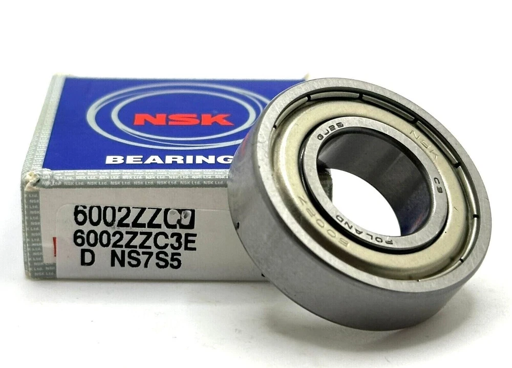 Description: This NSK 6002 ZZ C3 deep groove ball bearing is perfect for your mechanical power transmission needs. With metal shielding and a size of 15x32x9mm, this item will provide the durability and functionality you need for your industrial automation and motion controls. Made by an unknown country/region of manufacture, this bearing is a reliable choice for any business and industrial use. The brand is NSK and the model is 6002ZZ C3. Don't miss out on this opportunity to upgrade your machinery with a high-quality ball bearing. Product characteristics Category:Deep groove ball bearings Ball rows:Single row bearing Material:Standard bearing steel Outer ring:Without flange/groove Seal:Cover on both sides Clearance:Slightly increased radial clearance Cage:Sheet steel cage Temperature range:-20 to +120 °C Tolerance class:Tolerance class P0/PN2 / ABEC 1 Current insulation:No current insulation Bore:Cylindrical bore Material of rolling elements:Standard bearing steel Weight:0,030 kg ProductID:10105535 Customs tariff number:8482 1090 EAN:not available Dimensions Inner dimension: 15,000 mm Outer dimension: 32,000 mm Width: 9,000 mm Package Include : One (1) 6002 ZZ C3 NSK bearing On Sep 11, 2024 at 03:05:56 PDT, seller added the following information: On Oct 24, 2024 at 02:39:43 PDT, seller added the following information: On Nov 20, 2024 at 01:26:19 PST, seller added the following information: On Dec 11, 2024 at 21:02:20 PST, seller added the following information: