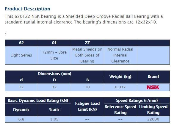 Description: Product characteristics Category:Deep groove ball bearings Ball rows:Single row bearing Material:Standard bearing steel Outer ring:Without flange/groove Seal:Cover on both sides Cage:Sheet steel cage Temperature range:-20 to +120 °C Tolerance class:Tolerance class P0/PN2 / ABEC 1 Current insulation:No current insulation On Dec 12, 2024 at 23:33:21 PST, seller added the following information: