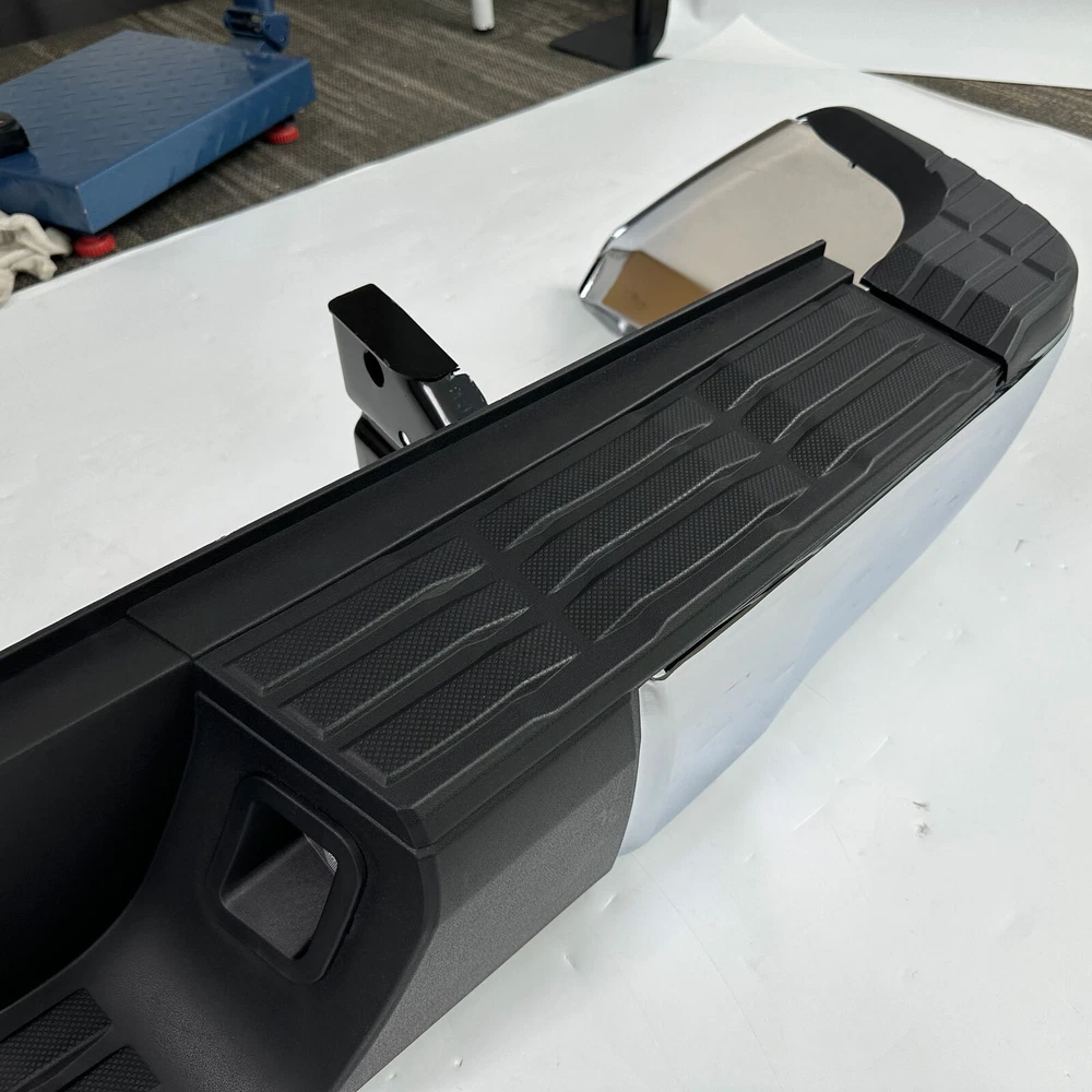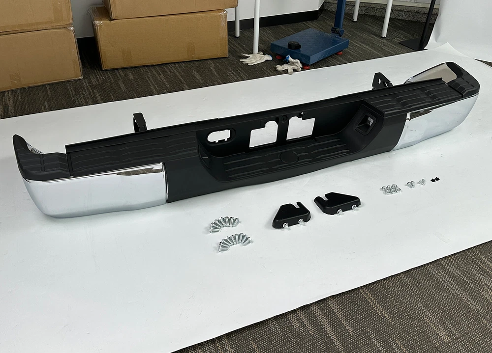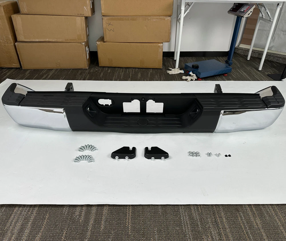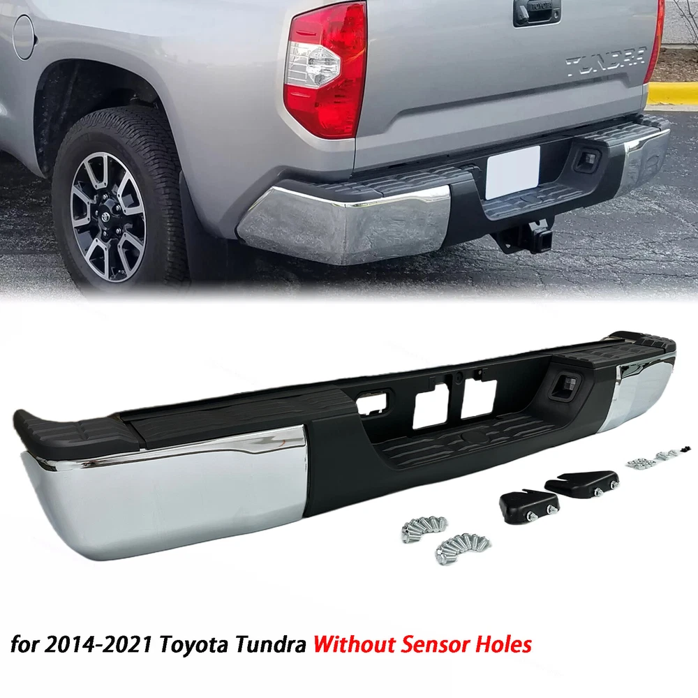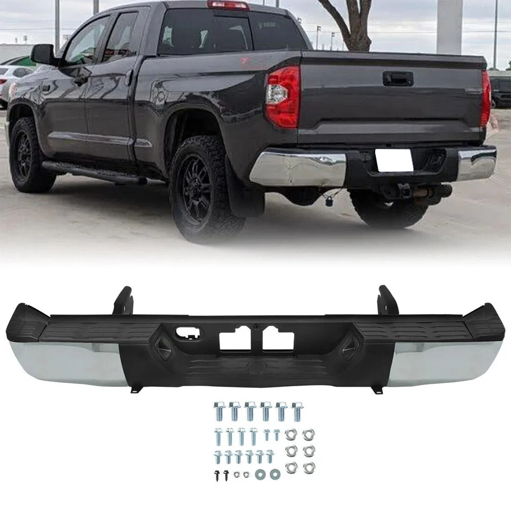 Color:Chrome + Black Surface Finish:Chrome Material:Steel + Plastic Placement on Vehicle:Rear Aftermarket Replace Number for TO1103119, TO1104123, TO1105123, TO1191104, TO1196102, TO1197102, TO1190103, TO1162103, TO1126100, TO1127100 Fits: For Toyota Tundra 2014-2021 Fit Models Without Sensor Hole Only Package: 1 set of Rear Step Bumper On Dec 13, 2024 at 02:09:37 PST, seller added the following information: On Dec 16, 2024 at 10:25:30 PST, seller added the following information: