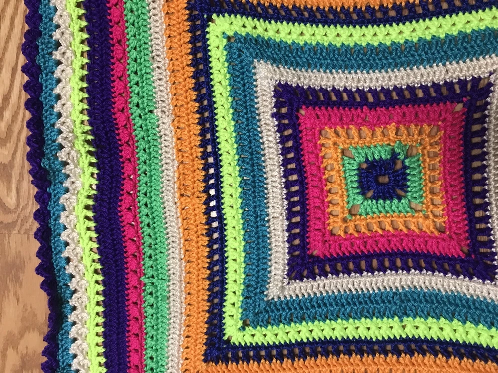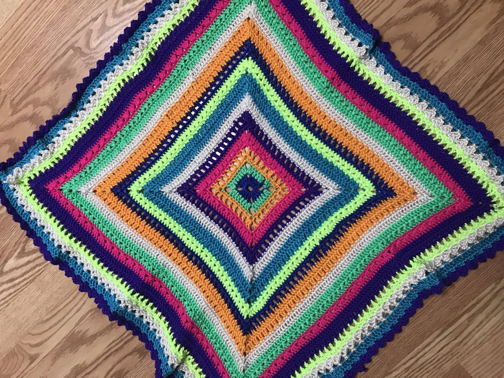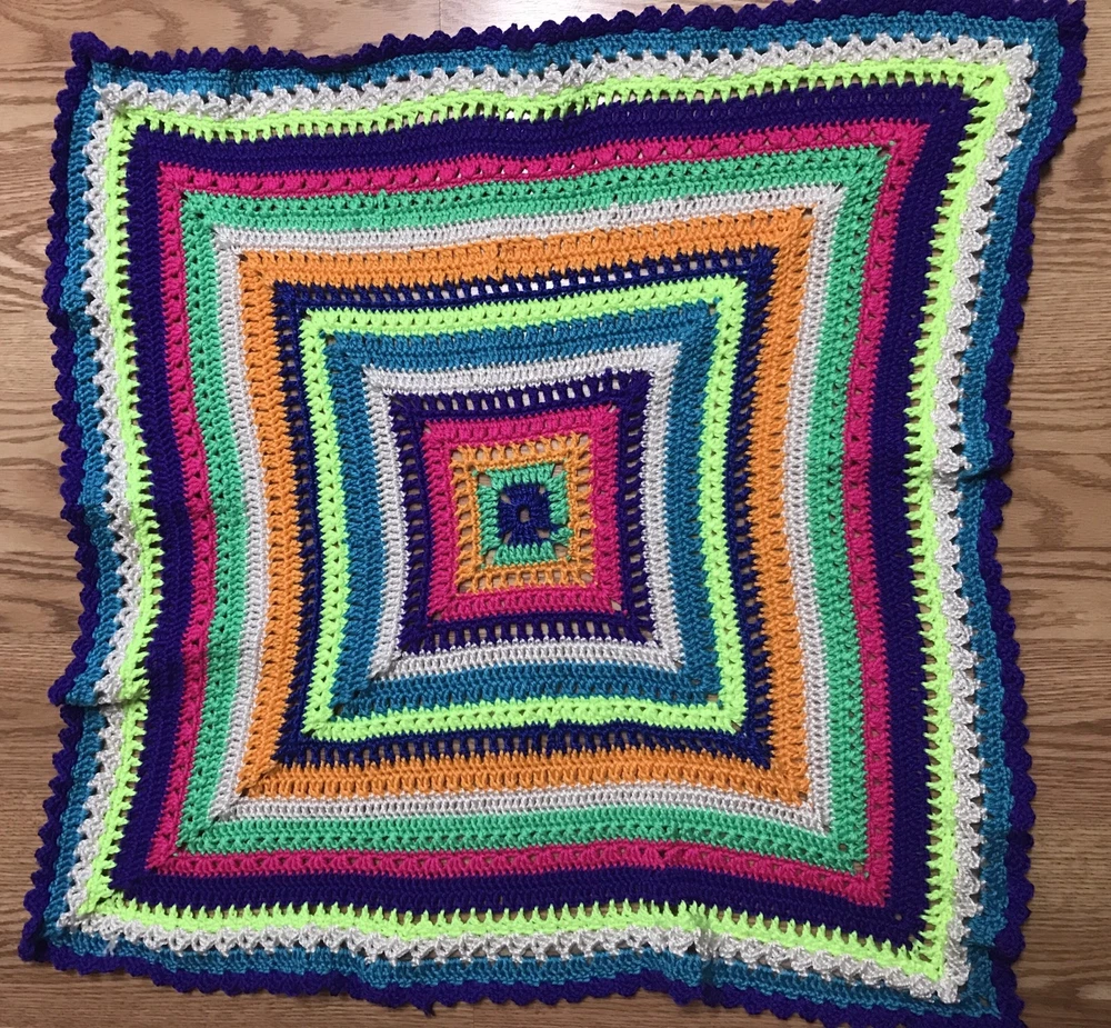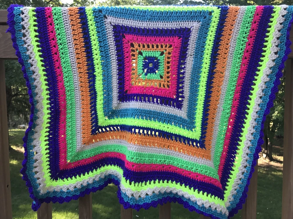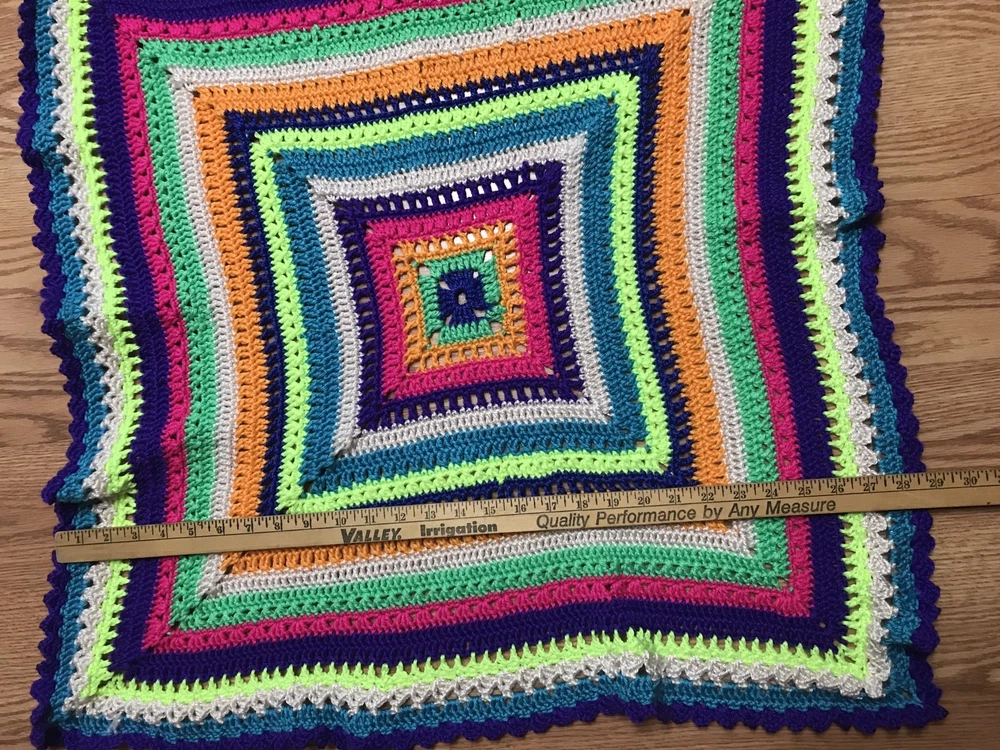 Up for your consideration is this handmade crochet blanket, just finished by me, right here in the USA (support local :)). I have used SO MANY NEON COLORS/ BRIGHT COLORS yarn to create this awesome granny square blanket. I did not follow any particular pattern for this blanket, I just used the color and stitch variety that looked good to me, so it is TRULY TRULY UNIQUE- so, so cute :) Very nice details- Cute purple scallop border. Made with very soft and glossy, Caron brand "Simply soft" acrylic yarn. The color is a nice and bright girl or boy combo! Nice dense pattern- perfect for going outdoors in Spring or using in the winter. Nice/ ideal for stroller use or car seat cover, approx 29 X 29" size. The square feels a bit ruffly right now, but will even out with use and washing. It is machine washable! Will also make an ideal baby shower gift for the new baby girl or boy. Great workmanship for a great price!! This one will sell out pretty fast! Don't miss it :) All my projects are made with great care in a smoke free home. It is a very good quality item that I'm offering for a very reasonable price, considering that it took me a week to crochet! Similar blankets are listed on ETSY for $65-90! It can also be used by adults as a lap afghan, perfect for winter months due to its dense pattern! Can also be used as Nursery room wall decor! Perfect for use as a christening/ baby shower gift! Will give you several years of use! All of my items are hand crafted in a smoke-free home, with lots of care. Check out my other handmade items, and have a great day! Feel free to email me if you have any questions. Please look at the positive feedback I've received for other blankets. Keep in mind that colors may appear slightly different in pictures. Blanket will be shipped flat rate package with tracking. I leave feedback for you once I know that you are fully satisfied with your purchase :)