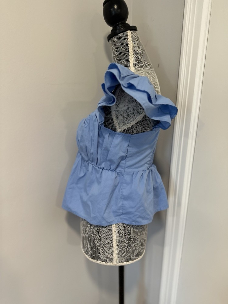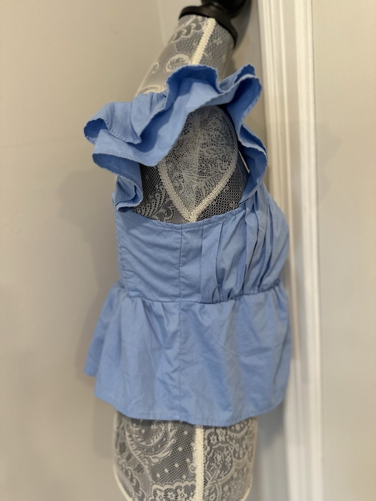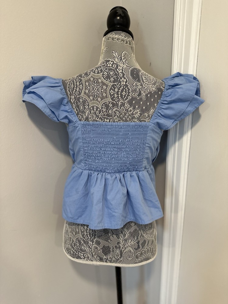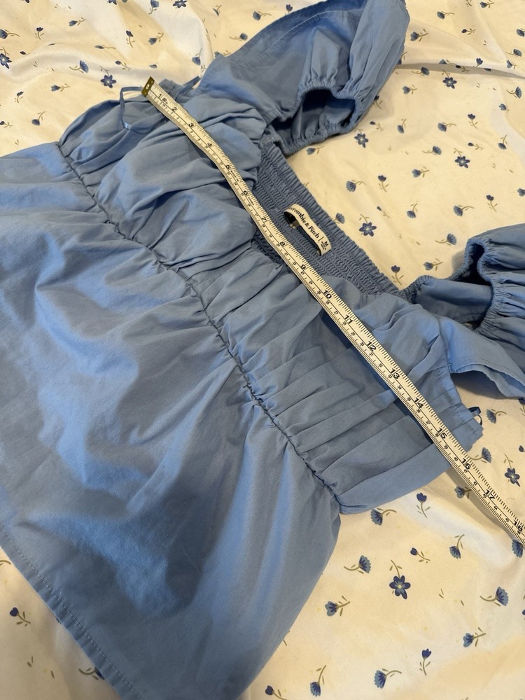 Abercrombie & Fitch Flutter Sleeves Poplin Smocked Back Babydoll Mall Brand Top. babydoll-style silhouette with flutter/ruffle sleeves, a gathered bodice, and an elasticized waist. Never worn. No rips, stains or defects. Please see pictures for measurements and best sizing. Items listed based on tag provided. For best fit please compare measurements to a garment you already have to ensure fit for your body type.