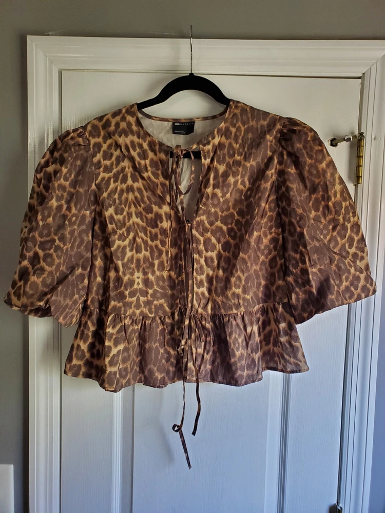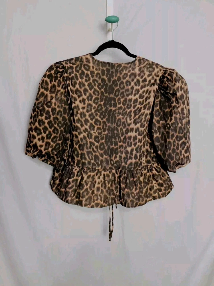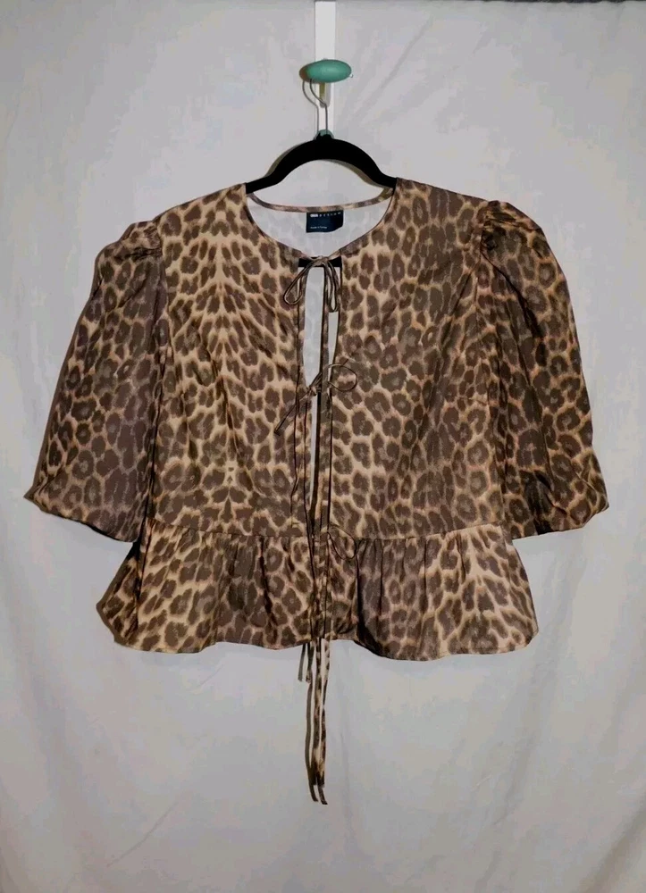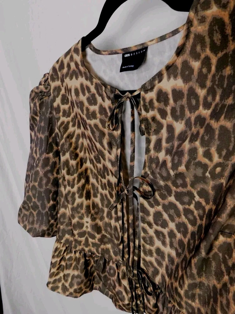 Department: Women Handmade: No Color: Leopard Print Type: Blouse Sleeve Length: Half Sleeve Occasion: Workwear, Wedding, Travel, Party/Cocktail, Casual Sleeve Type: Volume sleeves Theme: Animals, Colorful, Couture, Hipster, Leopard, Nature, Outdoor, Preppy, Punk, Rock, Steampunk, Tribal Accents: Bow Neckline: Round Neck Brand: Noisy may Closure: Tie Pattern: Animal Print Size: M Material: Cotton, 100% Cotton Garment Care: Machine Washable Size Type: Regular
