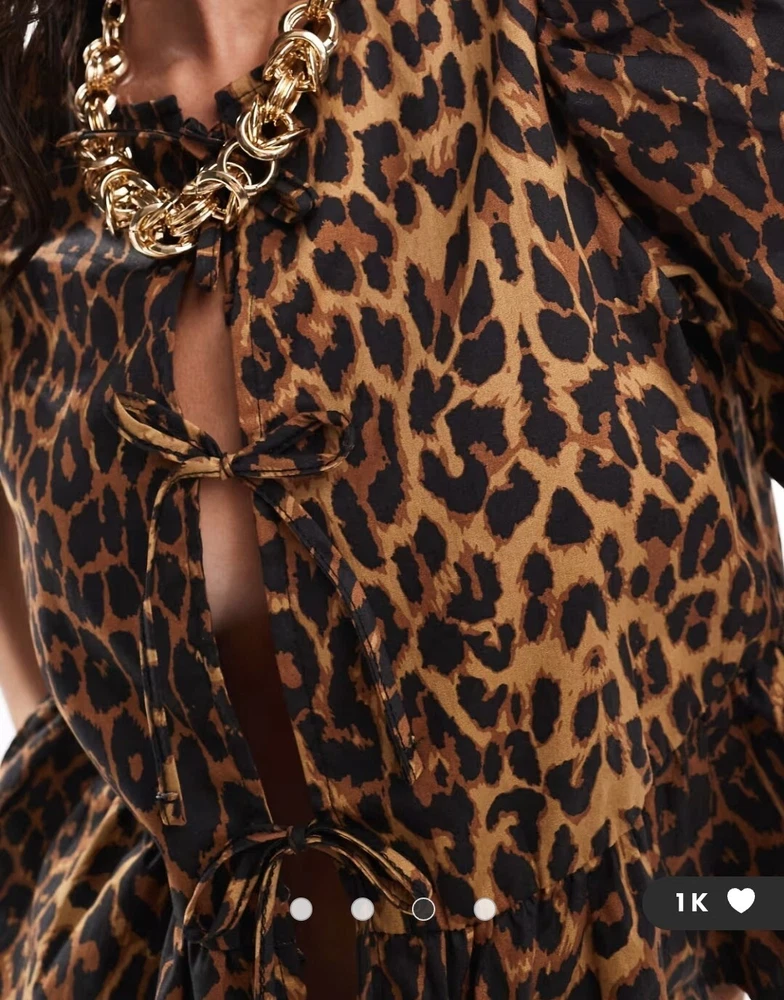 BRAND: Bringing relaxed, trend-led vibes to your everyday ‘fits, Noisy May is your go-to label for fashion-forward denim and wardrobe staples. Get on board with authentic, raw-cut jeans, plus new-season jackets, tops, dresses and slouchy hoodies, sweatshirts and sweatpants. With punch-packing prints and cutting-edge designs, our Noisy May at ASOS edit is on hand to level up your line-up – think Scandi style, but not as you know it. PRODUCT DETAILS: -Top by Noisy May -*Saves to inspo folder* -Animal print -Round neck -Tie front -Volume sleeves -Regular fit -Plain-woven fabric -Main: 100% Cotton. -Product Code: 137842845 -Machine wash according to instructions on care labels SIZE & FIT: -Model's height: 175.5cm / 5' 9'' -Model is wearing: S - US 4