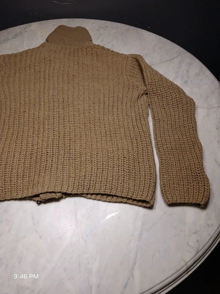 This is a vintage Polo Ralph Lauren cardigan sweater for men in size XL. It features a shawl collar, a solid beige color, and is hand knitted with a tight-knit pattern. Made of a blend of linen and cotton, this heavyweight sweater has long sleeves and button accents. Suitable for various occasions such as travel, weddings, parties, casual wear, work, or formal events. The style is described as athletic fit with a classic, preppy theme, perfect for winter, fall, and spring seasons.
