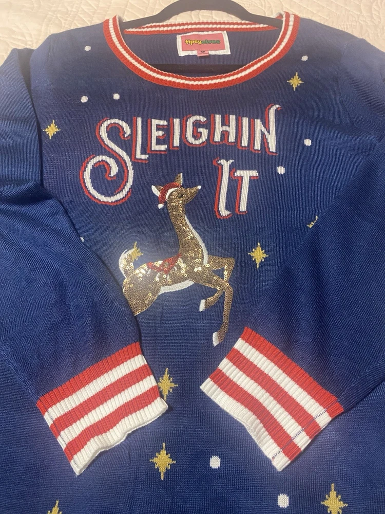 NWOT Purchased and never worn Size Large Underarm to underarm seam measures 22 inches All sequins in tact - smoke free & pet free home Will ship promptly Purchase with confidence as I have 100% feedback