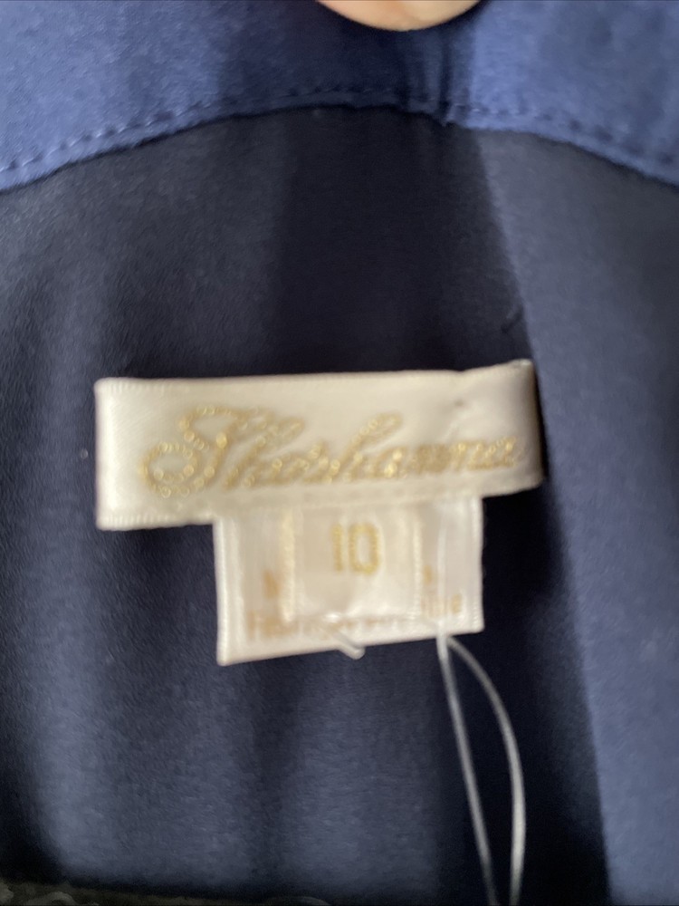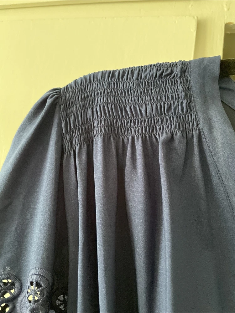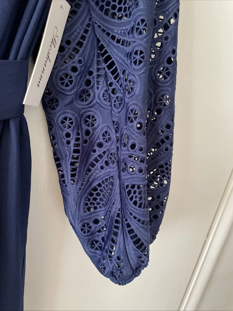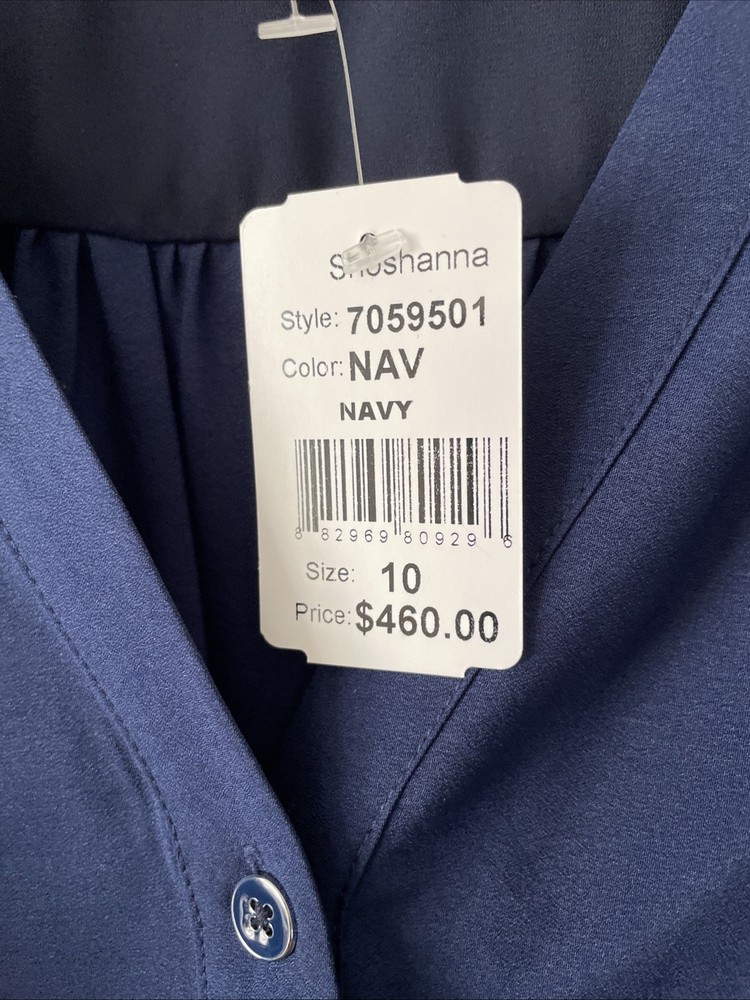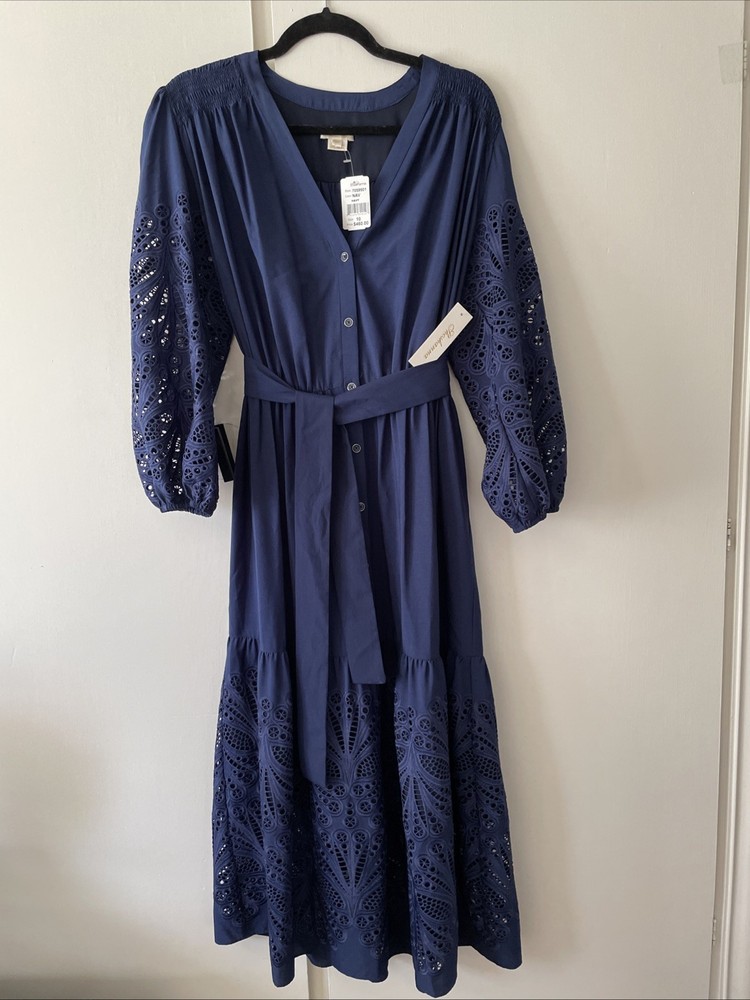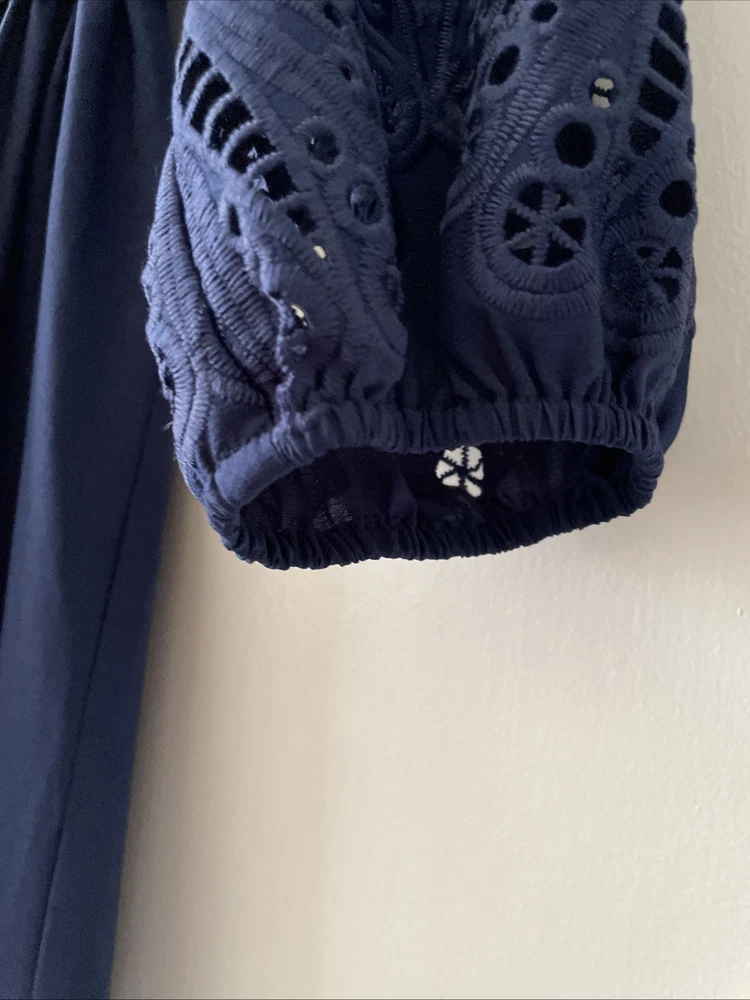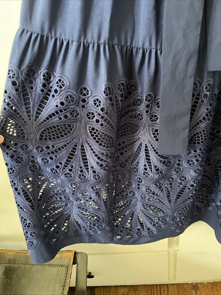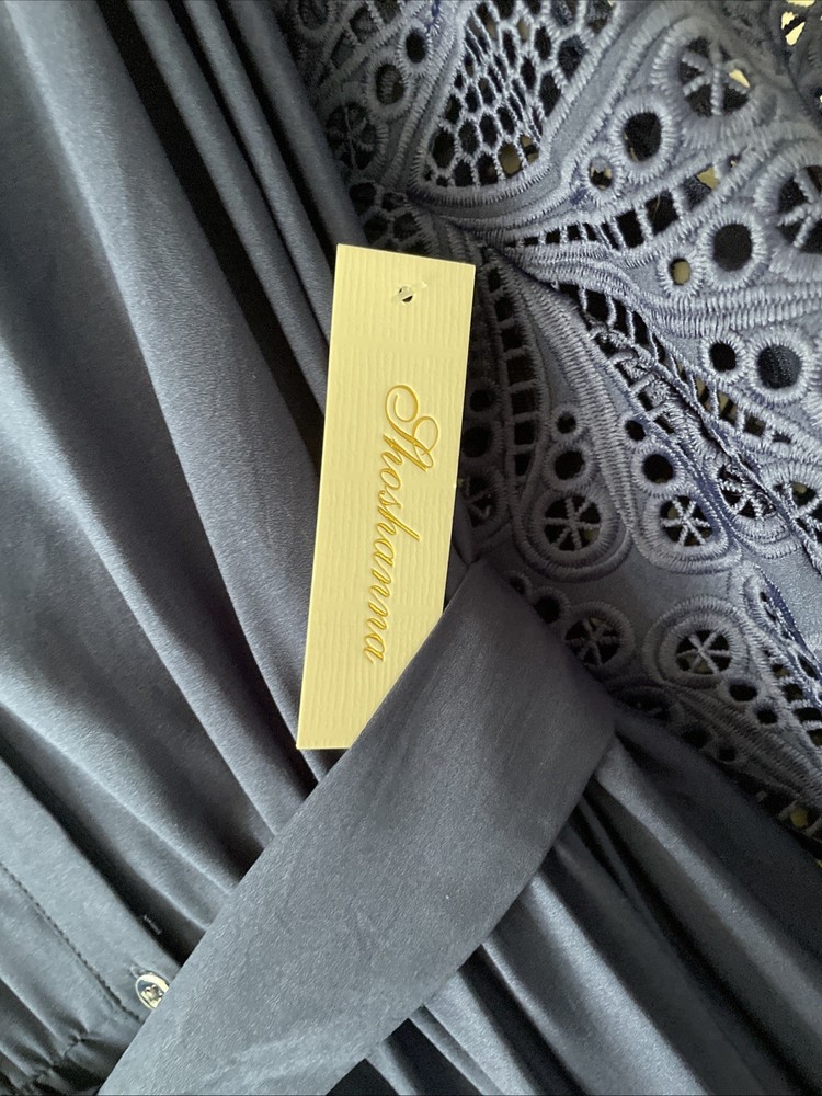 NWT $460 SHOSHANNA Nessa V-Neck Eyelet Dress Sz 10 Navy. Condition is New with tags. Shipped with USPS Ground Advantage.