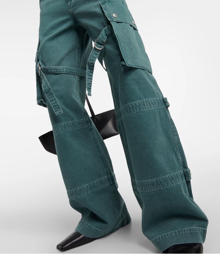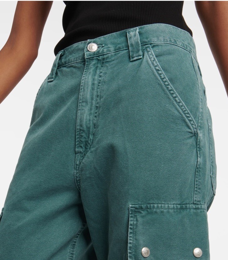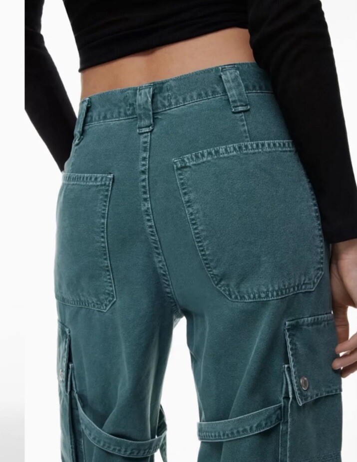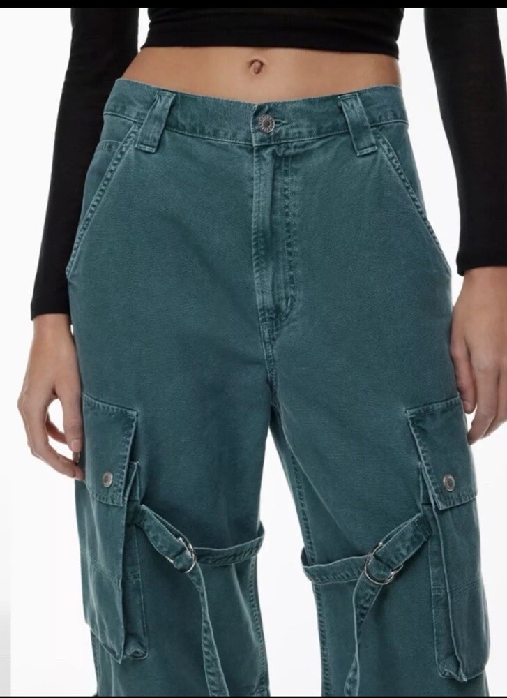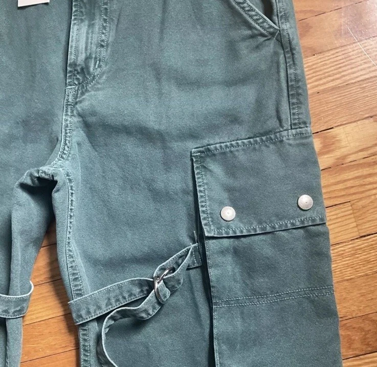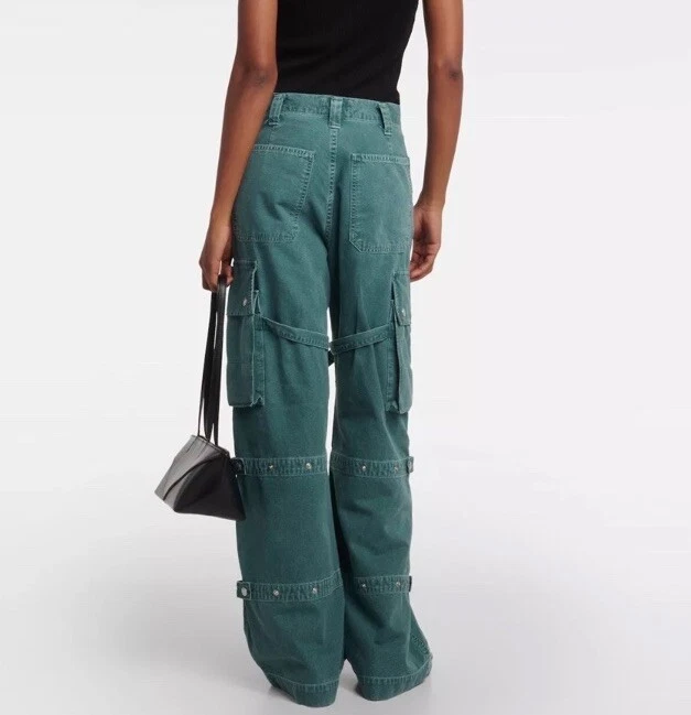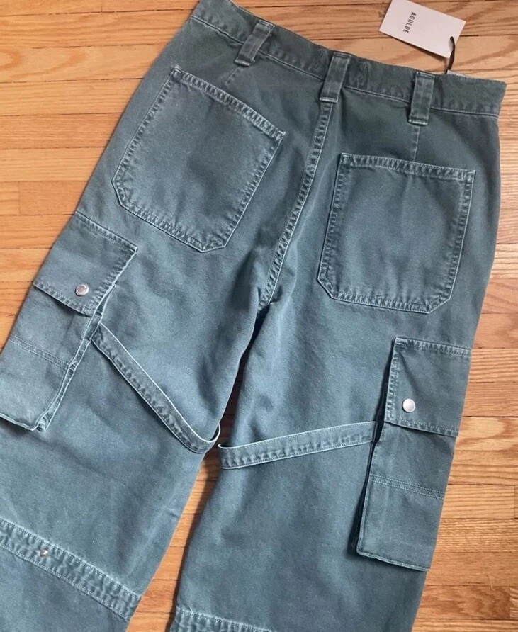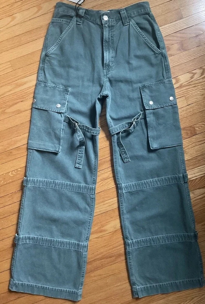 Please read all for specific measurements below… Rare! Limited edition. Sold out online! NEW WITH TAGS AGOLDE VIVIAN strap pant/jeans Retail $348 These are high-rise cargo pants with a slouchy silhouette, exaggerated pockets, and a relaxed fit through the hips and legs. Snaps, straps, exaggerated seaming. They're made from non-stretch, midweight cotton that's breathable and super smooth. Finished hem. Exaggerated cargo pockets. Color is “absinthe” muted green denim 100% glorious cotton Made in USA Tagged Size 23, but like almost all agolde jeans these fit generously - Would be a relaxed / slouchy fit on someone who typically wears a 23. May fit a 24,25 depending on how baggy you want. So PLEASE CHECK Actual measurements below Waist opening 13.5 across Hip approximately 20.5” at top of cargo pocket Inseam 31” Rise nearly 11.5 Leg opening 10.75” across