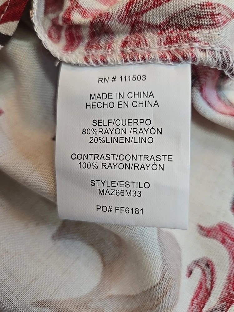 I was really happy the seller accepted my offer. This colorful cotton blouse was shipped promptly, and carefully packaged in tissue and a shipping envelope. It is even prettier than the pictures posted on the seller's site described. The cotton is soft, the colors like new. The final price was a good value for such a nice top.