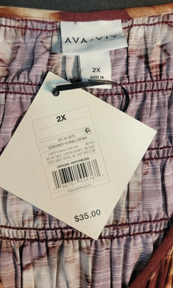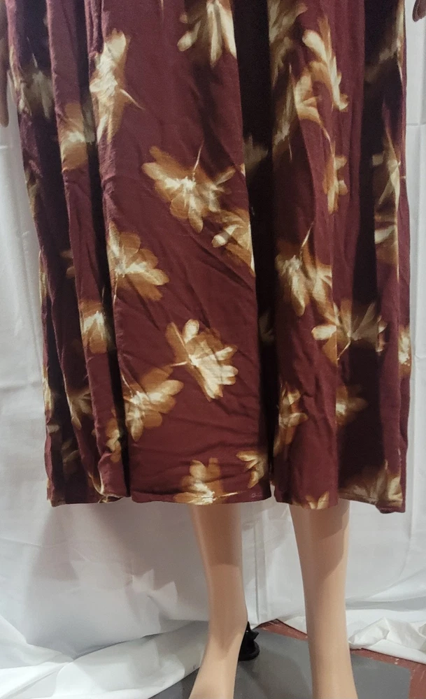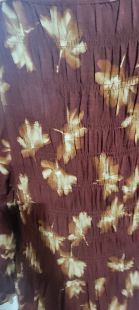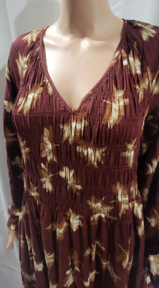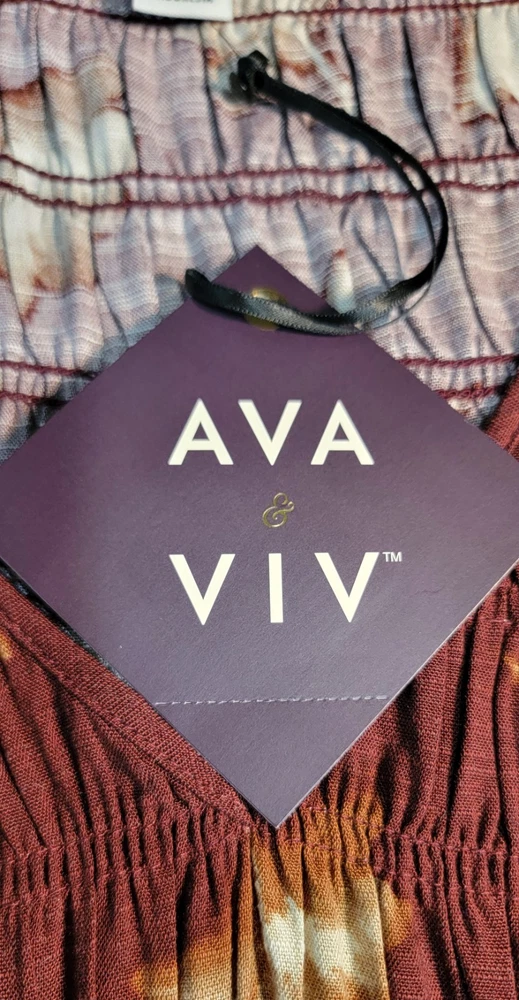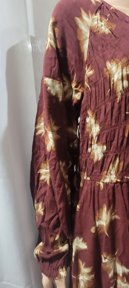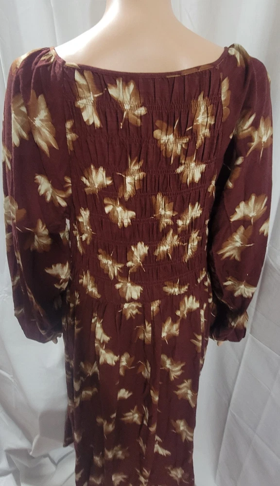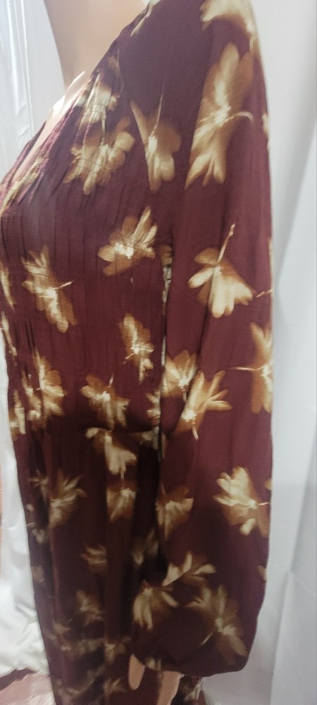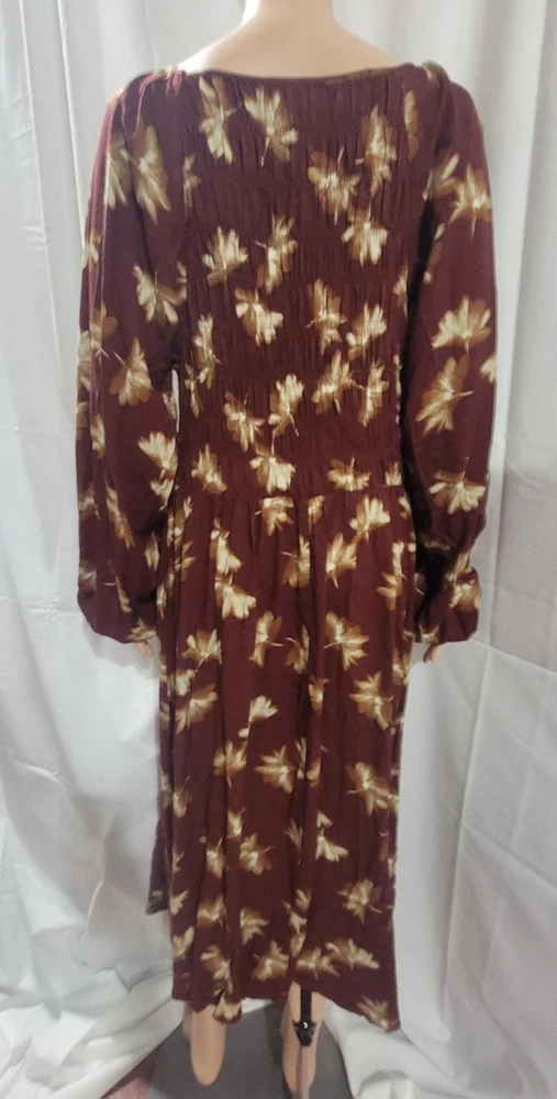 The NWT Ava & Viv Long Sleeve Smocked Midi Bodice Dress in Burgundy 2X is a stylish and versatile piece perfect for autumn. With a V-neckline and pullover closure, this dress is easy to wear and comfortable for all-day use. The floral pattern and boho style give it a feminine and trendy look, while the balloon sleeves add a touch of elegance. Made from cotton blend, this dress is machine washable and suitable for various occasions such as travel, casual outings, workwear, and business meetings. Perfect for the fall season, this dress is a must-have for any fashion-forward woman's wardrobe. Measures Approximately Shoulder seam to shoulder seam 17" Armpit seam to armpit seam across the chest 21" Shoulder seam to hem 48" See pictures for details