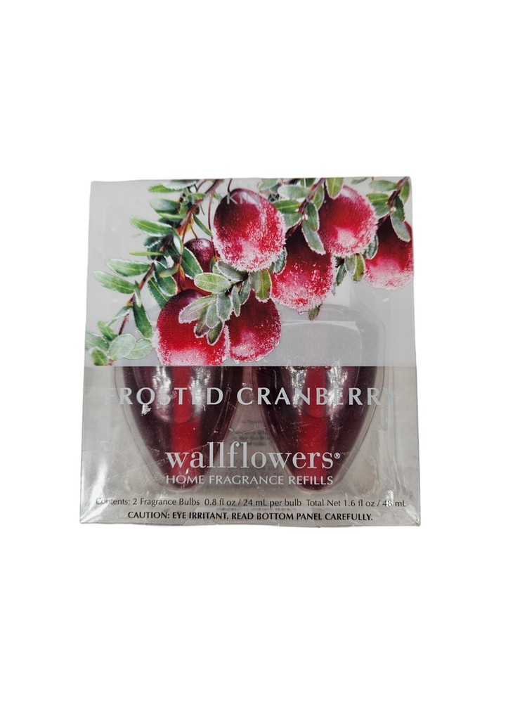 NWT Bath & Body Works Wallflowers Home Fragrance Refills Frosted Cranberry R20 New with tags NWT Bath & Body Works Wallflowers Home Fragrance Refills Frosted Cranberry 2 Pack. Fruity yet refined, a seasonal mainstay with this inspiring blend of iced cranberries, blonde woods, red apple Vintage Bath & Body Works Slatkin & Co. Frosted Cranberry Wallflowers Home Fragrance Refills, 2-Pack (1.6 fl oz total) FRAGRANCE: iced cranberries, blonde woods, red apple OVERVIEW: Fragrance that welcomes you home! Combine with your favorite Wallflowers Fragrance Plug, sold separately, to scent any room with noticeable fragrance for weeks and weeks. Made in USA. This item is new with tags, no defects. Only removed from box for pictures.