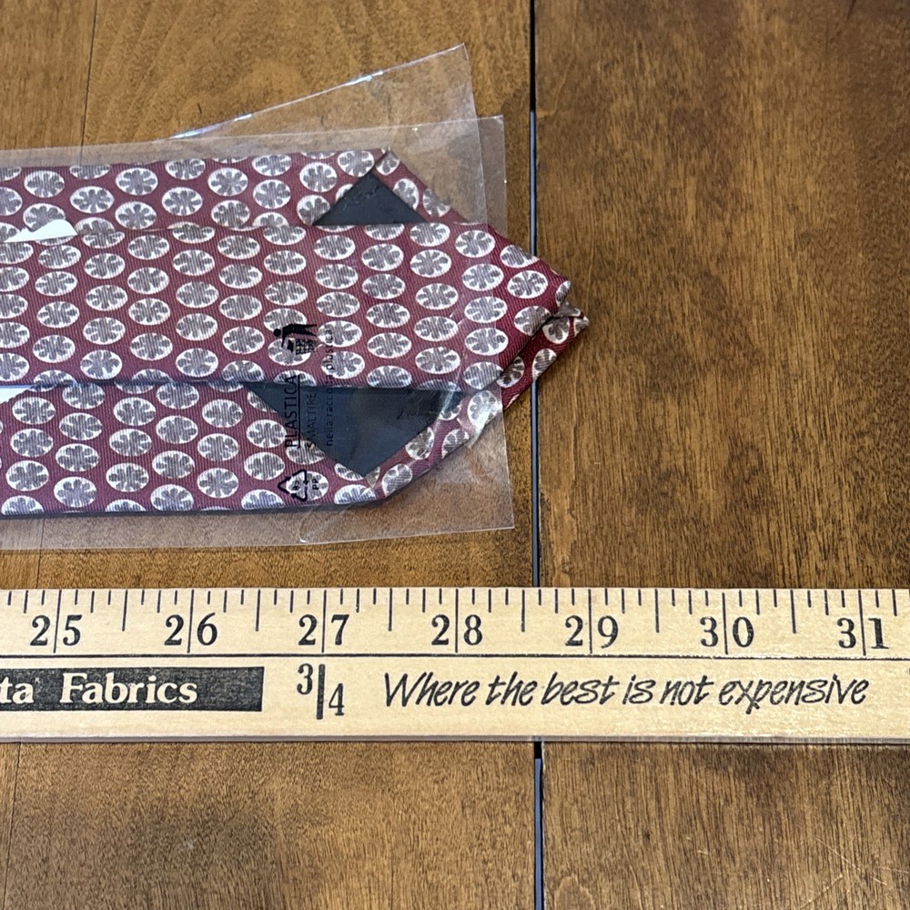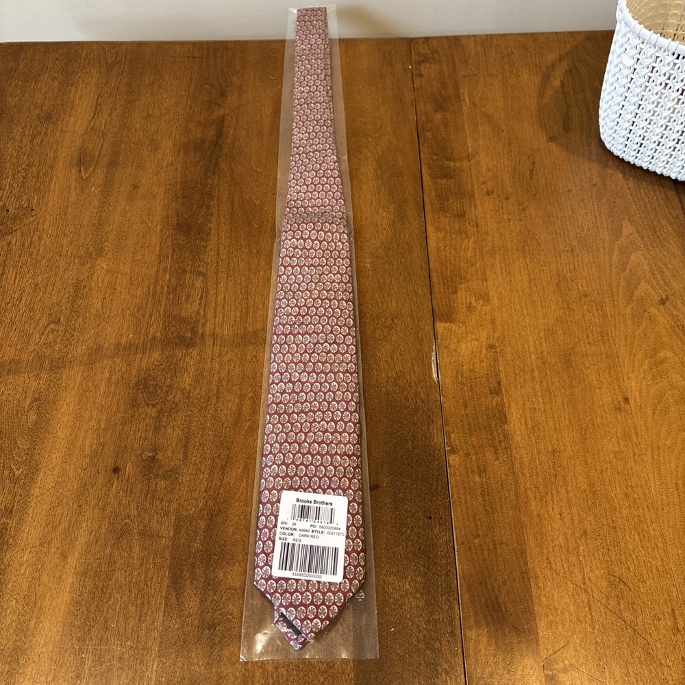 This product is a classic Brooks Brothers men's silk tie in a maroon burgundy color. Made in Italy from 100% Italian fabric, it features a geometric pattern and traditional 3 3/8" width. The tie is a classic 59" long, perfect for adding a touch of elegance to any formal outfit. Known for their quality and style, Brooks Brothers ties are a timeless accessory for any man's wardrobe.