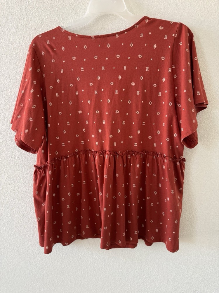 This burnt orange blouse is a summer staple—soft, flattering, and effortlessly chic! The front bow adds a playful touch, while the lightweight cotton keeps you cool. Perfect with jeans or shorts, it’s versatile for casual outings or travel. The 2X fit is true to size, and the vibrant color pops beautifully. A must-have for any plus-size wardrobe!