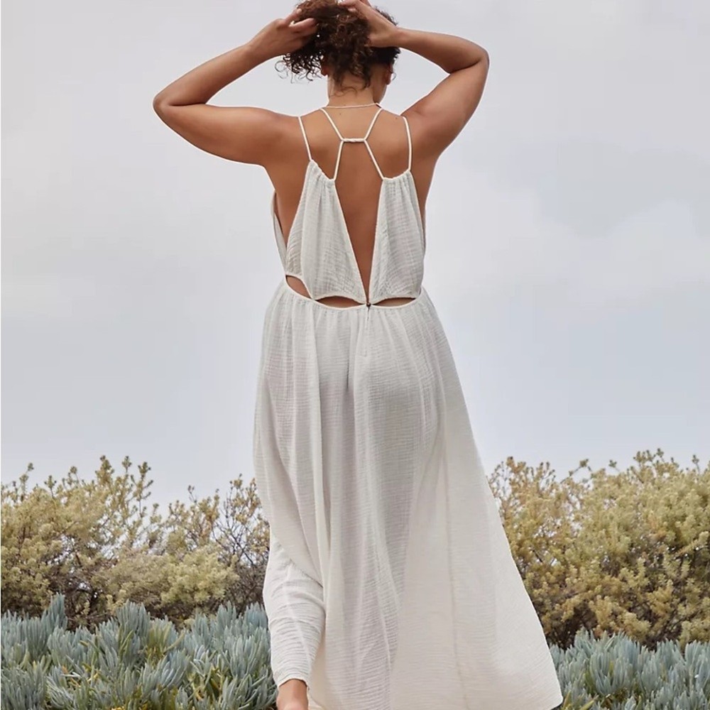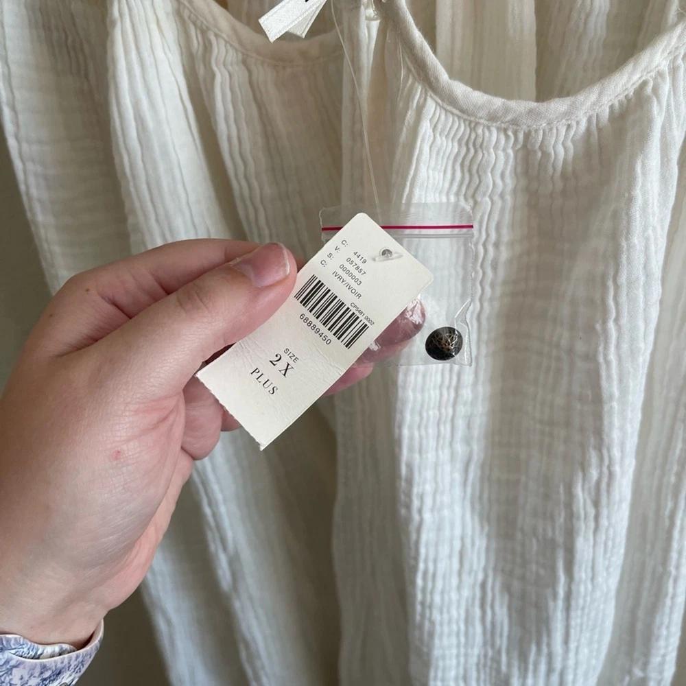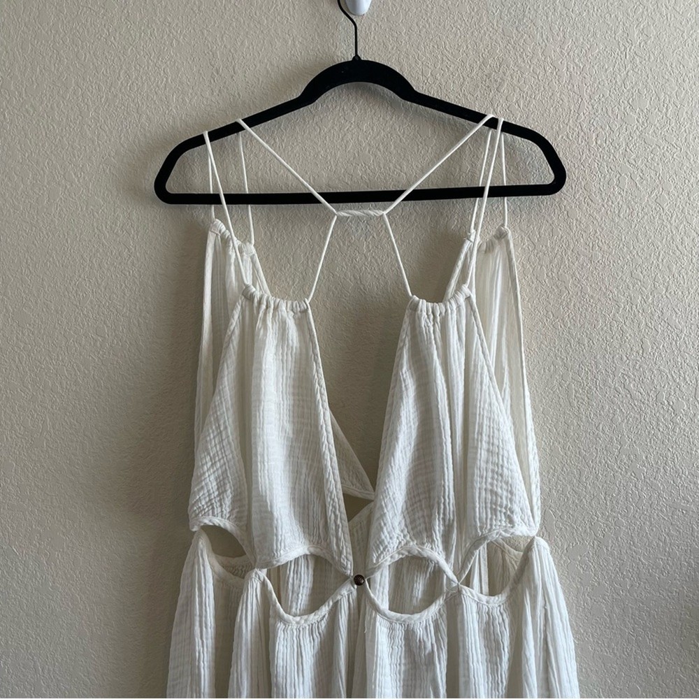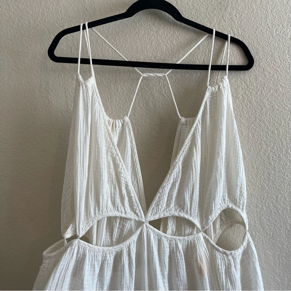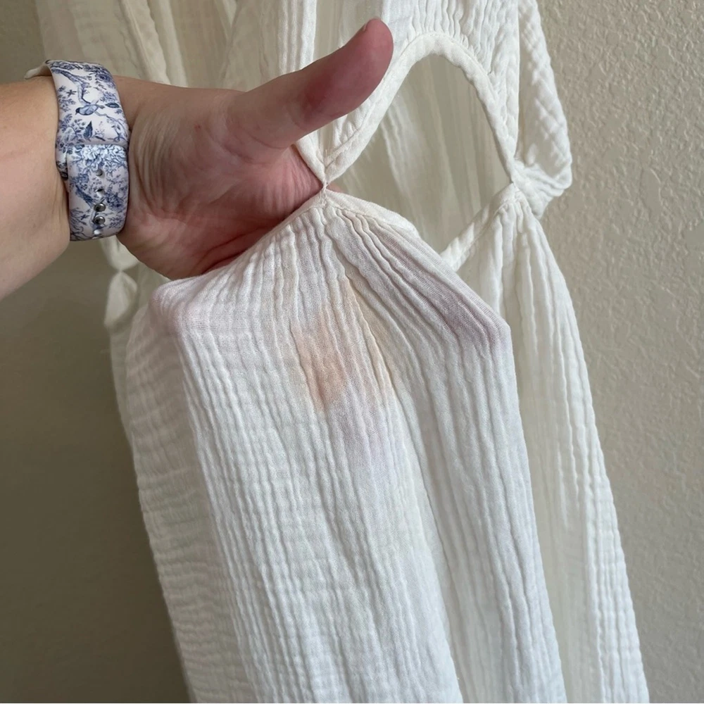 NWT By Anthropologie Gauzy Cutout Maxi Dress Gauze White Womens Size 2X This dress is new with tags but does have a mark pictured - might come out if treated. Oversized, semi sheer, comfortable, lightweight. Women's Size 2X Approx Measurements: Length: 61 in