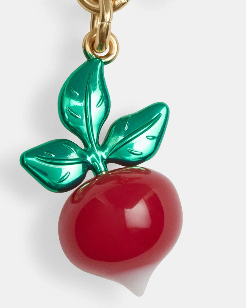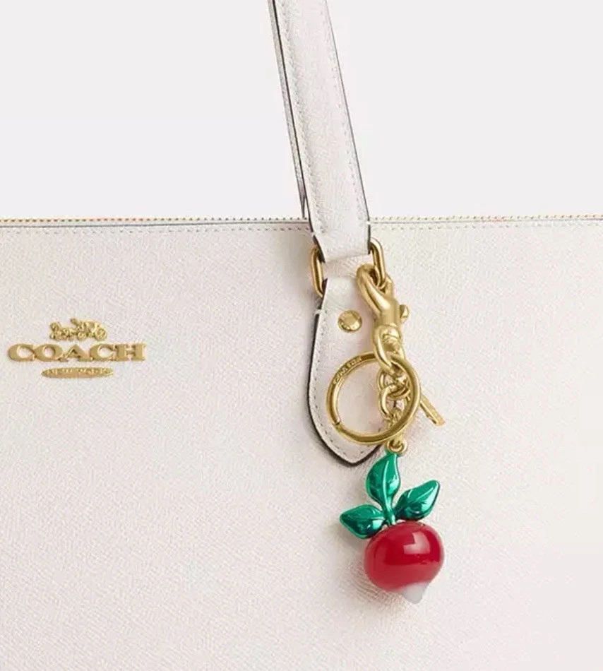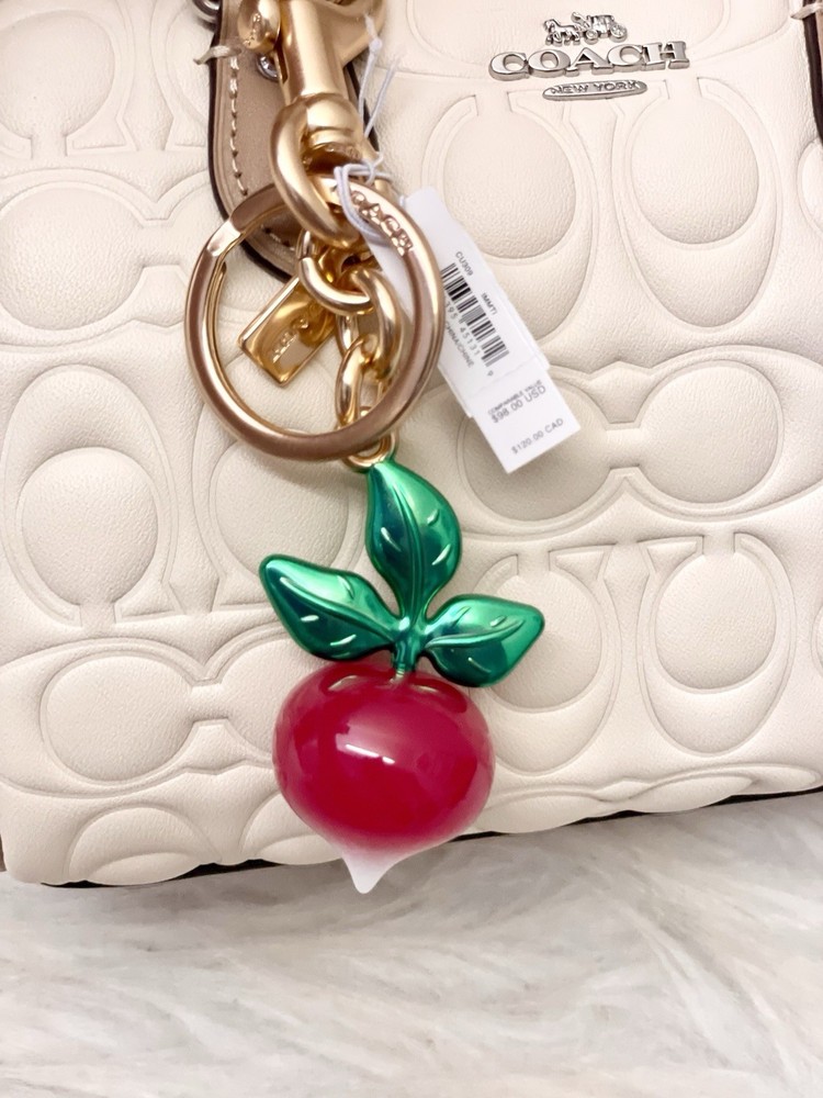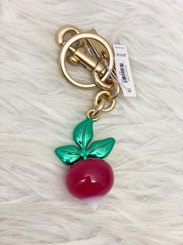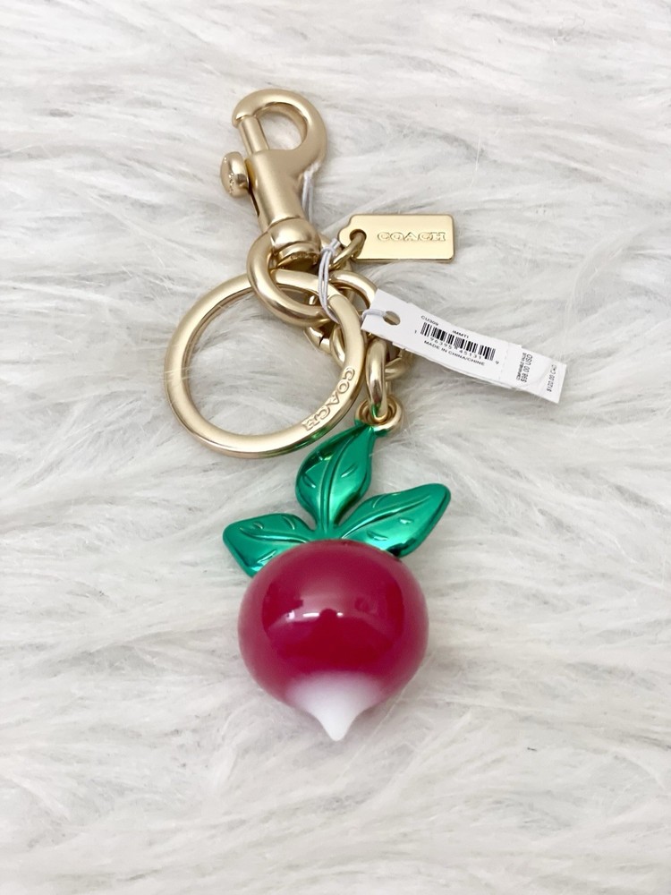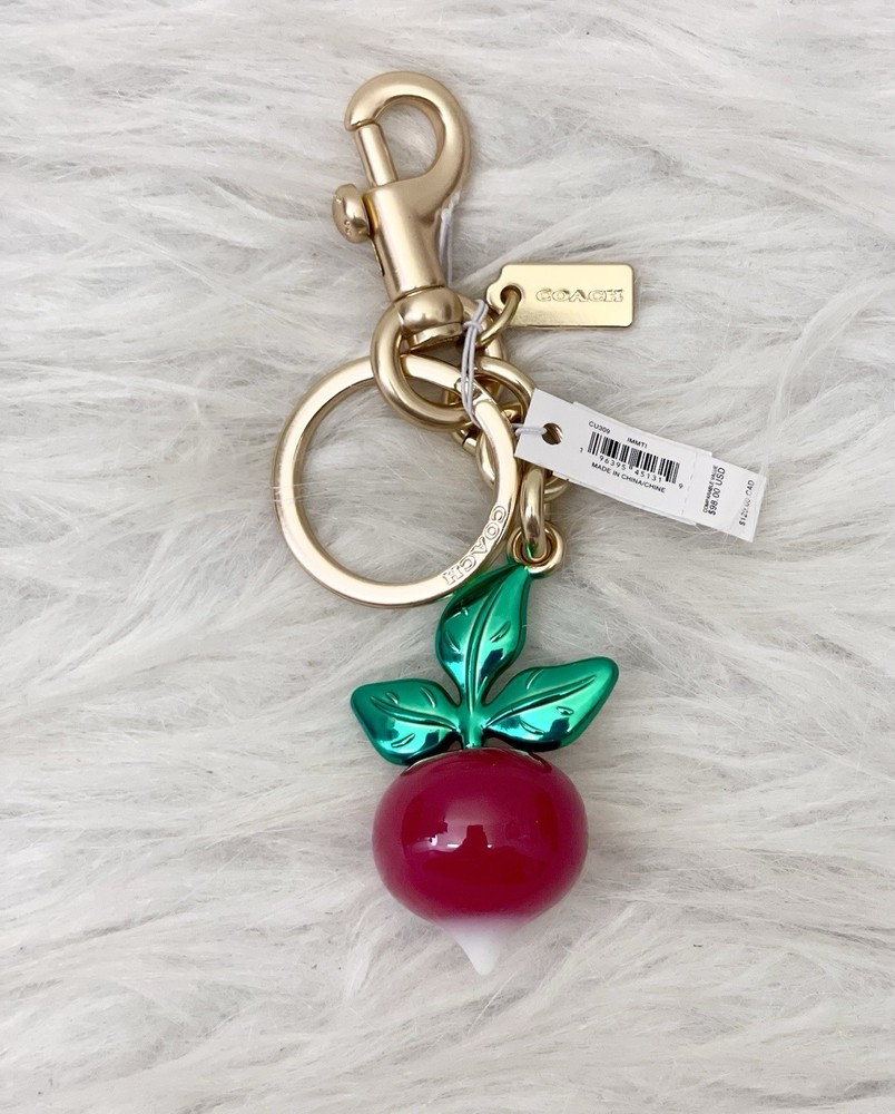 Pattern: Radish Country of Origin: China Size: One Size Vintage: No Accents: Logo Features: Detachable, Multifunctional Character Family: Charmed Theme: Radish Color: Red Brand: Coach Handmade: No Item Length: 2.25 in Personalize: No Type: Key Chain Character: None Material: Resin Style: Keychain Item Width: 1 in Department: Women