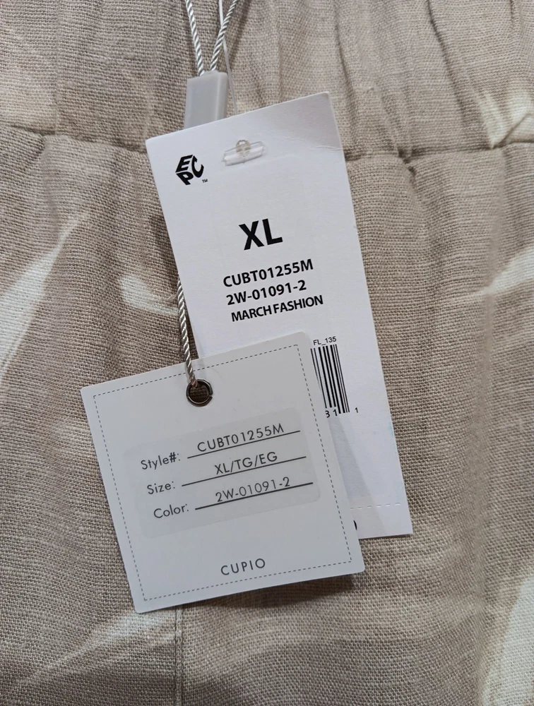 Elevate your wardrobe with these stunning Cupio pants in size XL. The beautiful floral pattern and brown cream color are perfect for any occasion, whether it's for travel, a party/cocktail event, or even for workwear. These pants feature a pull-on closure and elastic waist for maximum comfort and convenience. The knit fabric type and wide-leg style make them perfect for a relaxed fit, while the high-rise and flat front add a touch of sophistication. These pants also have convenient pockets and are machine washable for easy care. The lagenlook, bohemian, peasant, and tropical themes make them a unique addition to your wardrobe. Don't miss out on these versatile and stylish pants!