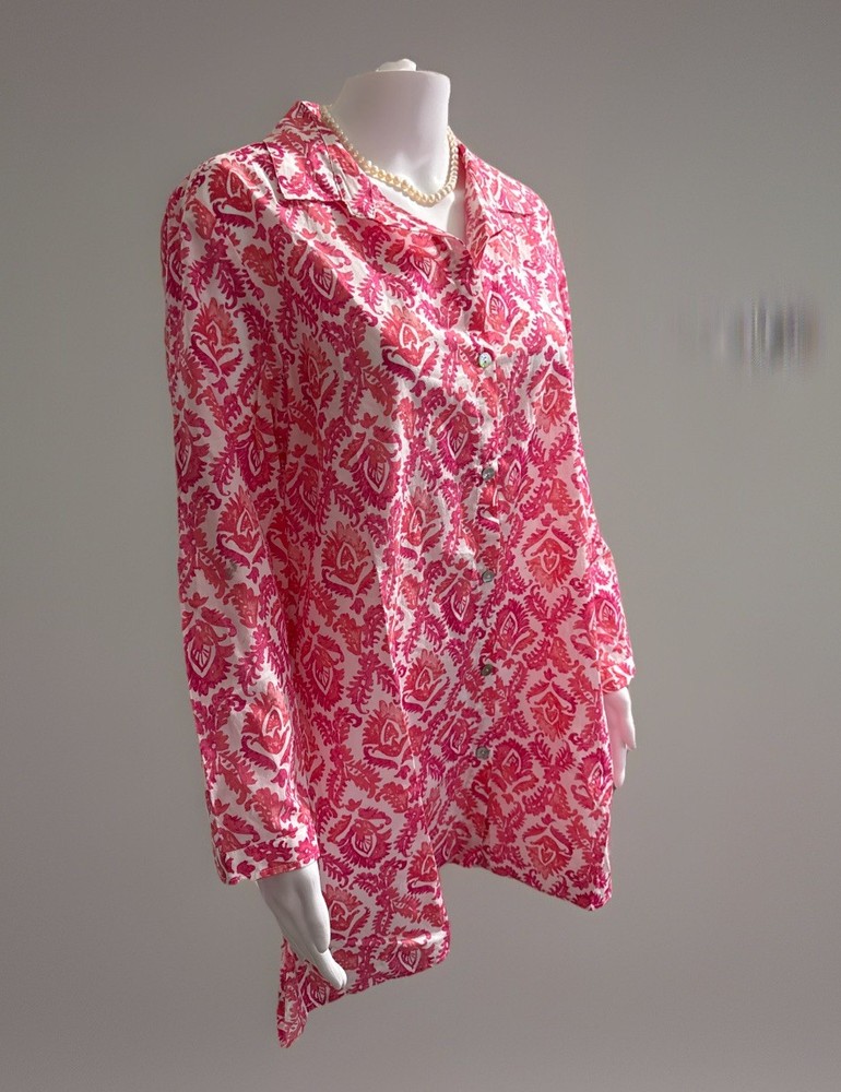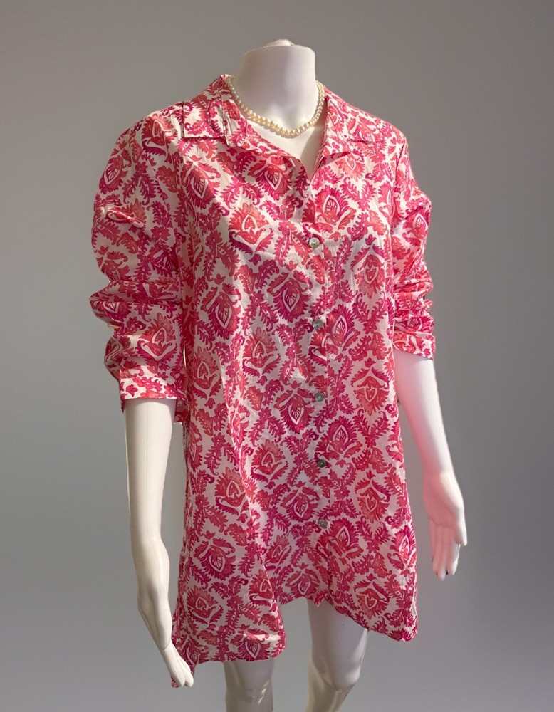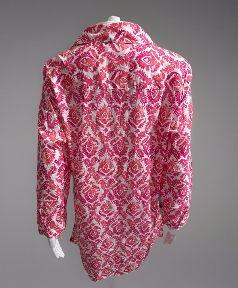 The NWT Escape by Habitat Clothes Women's Top in size M and watermelon color is a stylish and comfortable button-up tunic made from 100% cotton. With a collared neckline, long sleeves, and casual sleeve type, this top is perfect for casual occasions in the summer, fall, and spring seasons. The button accents add a touch of style to this versatile piece, while the machine washable care instructions make it easy to maintain. Perfect for women looking for a fashionable yet practical addition to their wardrobe.