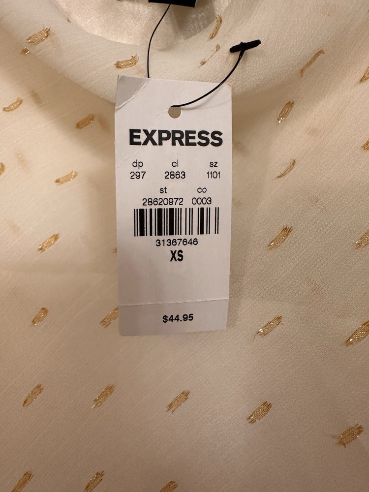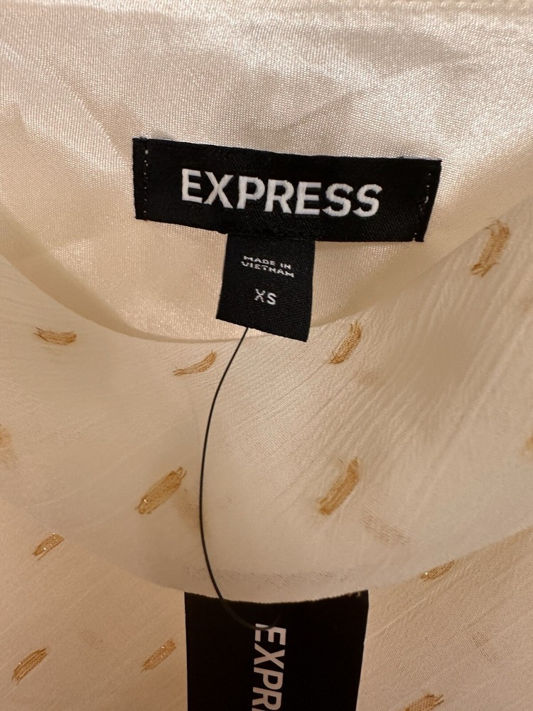 NWT Express Women's Ivory W/ Gold Accent Tank Top Spaghetti Straps Size XS. Condition is New with tags. Shipped with USPS Ground Advantage.