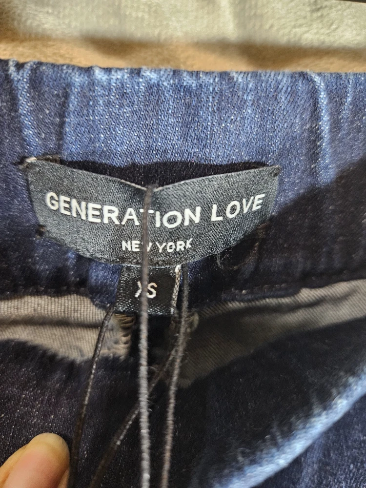 These Generation Love jeggings are perfect for any occasion, whether it's a party or a casual day out. The raw hem and zippered pockets add a unique touch to the solid blue color, which is made from a blend of polyester, spandex, and cotton. The mid-rise fit and machine washable garment care make them comfortable and easy to wear. The XS size and waist size, which can be seen in the picture, ensure a perfect fit for the 8.5-10.5 inch inseam. These jeggings are perfect for summer, fall, or spring and are made in China. The love theme adds a touch of romance to the jeggings, making them a great addition to any wardrobe.