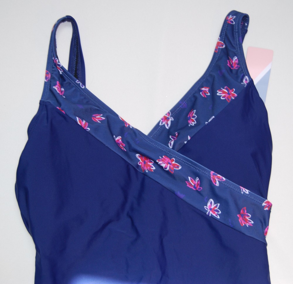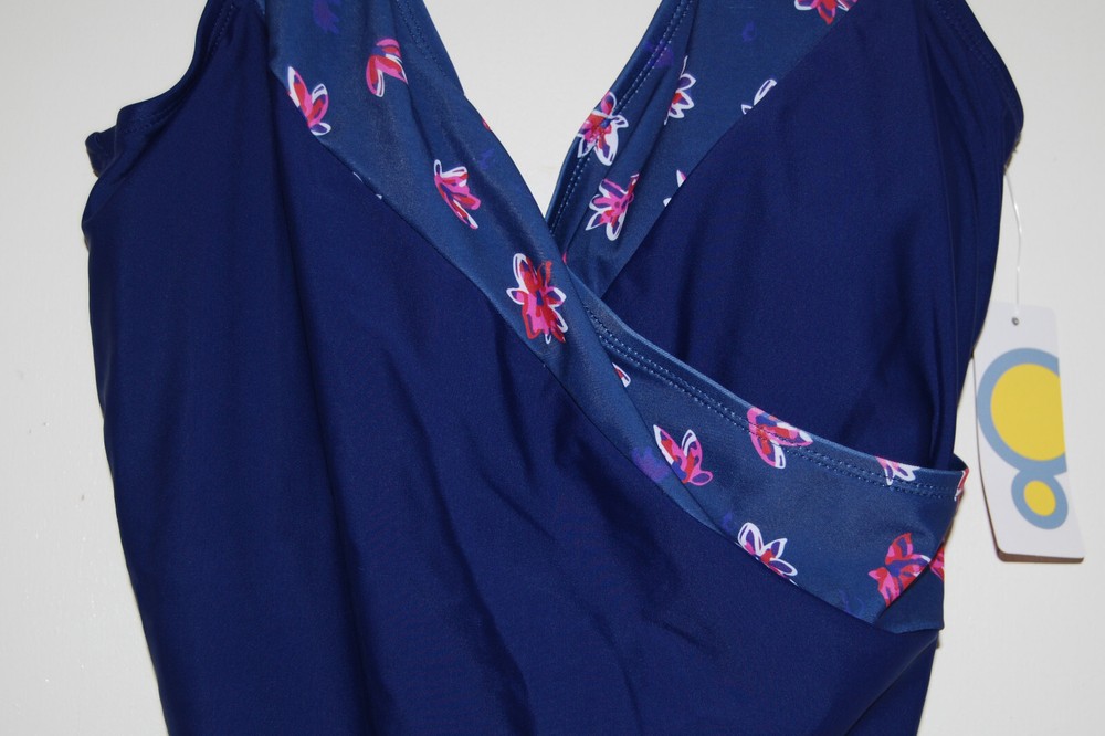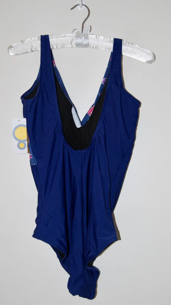 Halcurt Women's Navy Blue Floral Accent Wrap Front V-Neck Low Back One-Piece Swimsuit, size Medium, only $9! Condition: New With Tags - Shell made of 82% polyester, 18% spandex - Main body is solid dark navy blue - Cross-over V-neck with thick trim that continues up front half of strap in pink and white floral pattern on slightly lighter blue background - Lined front and back interior in black - Low cut scoop back - Tank style, with 1" wide straps, not adjustable - Built-in bra with removable pads Measurements for size Medium: - Chest across from armpit to armpit laid flat measures 15.5" - Length from top shoulder strap to center crotch measures 28" *Domestic Returns Accepted if Hygienic Lining & Tags are still Intact* This is an authentic product, but I am not a representative or or an authorized reseller of the manufacturer. Not what you need? Please click here to visit my eBay store stacie369 for more women's swimwear & an eclectic range of products at unbeatable prices! Shipping Note: If the item is returned to me as undeliverable for whatever reason or if the item is not correctly delivered as a result of buyer error, the shipping costs will not be refunded. Likewise, if the item is subsequently re-shipped, the buyer must pay the additional shipping charges. Thank you for your understanding. Thanks for looking!