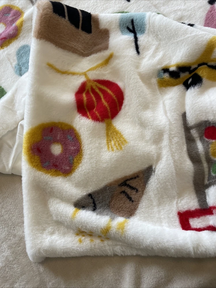 NWT ISAAC MIZRAHI Faux Fur NEW YORK Icons Throw Blanket 50 x 70 Pizza Broadway