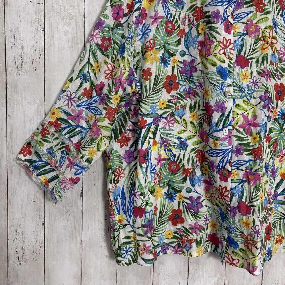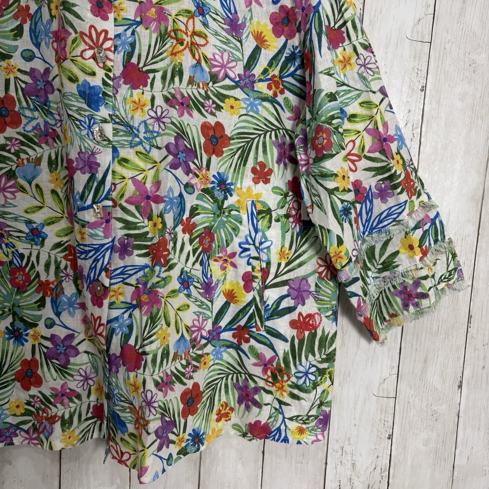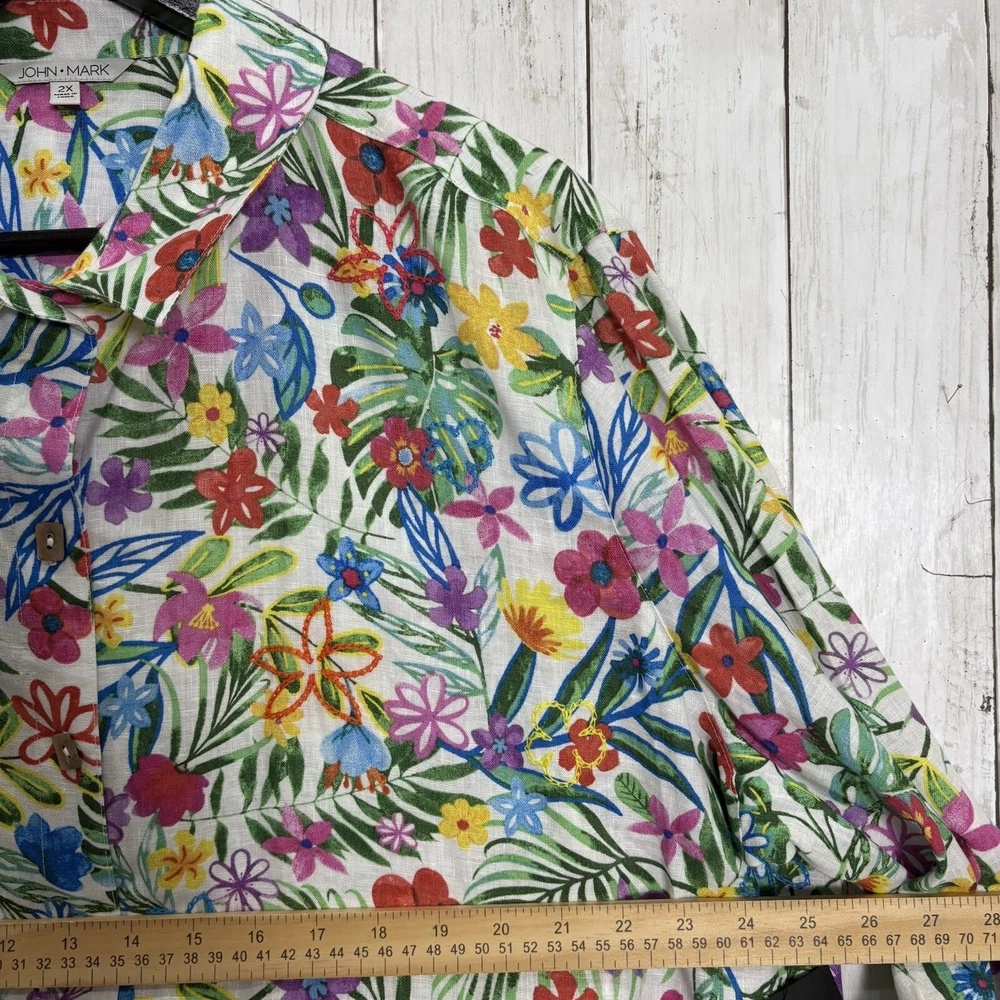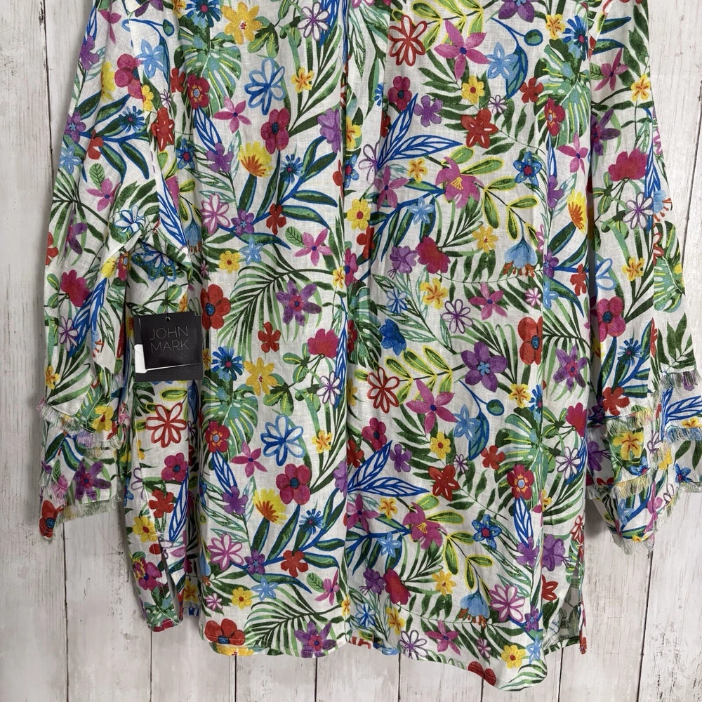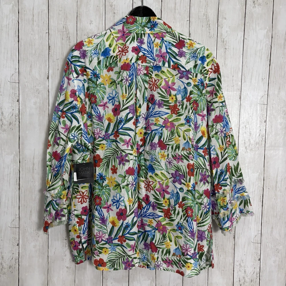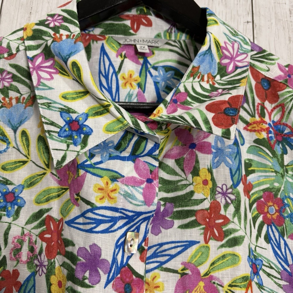 NWT John Mark 100% Linen Floral 2X Print Point Collar 3/4 Sleeve Front Tunic MSRP - 129$ Pit to pit - 25.5 “ inches (approx) Shoulder to bottom - 26.5” inches (approx) Inspected before shipment Thank you