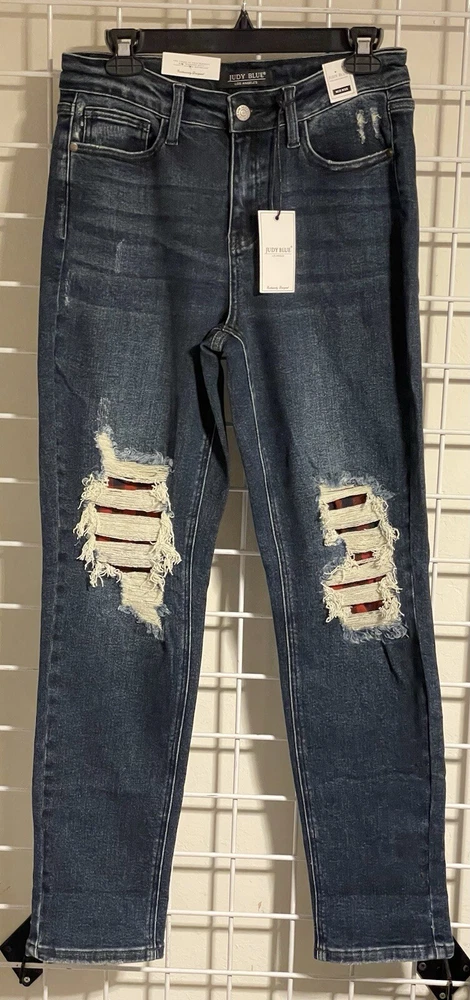 Get ready to rock the Judy Blue Boyfriend Fit with these stylish distressed jeans. Made from a blend of polyester, spandex, and cotton, these jeans are comfortable, stretchy, and perfect for any season. Featuring a 5-pocket design with a coin pocket, these jeans have plenty of storage space for your essentials. The mid-rise fit and slimming dark wash make these jeans a great choice for any occasion, from festivals to cowboy gatherings. With a button closure and Judy Blue logo accents, these jeans are both fashionable and functional. The 31-inch inseam and regular fit make them a great choice for women who want to look and feel amazing. Machine washable and made in China, these jeans are part of the Judy Blue Boyfriend Fit product line. Don't miss your chance to add these stylish jeans to your wardrobe today!