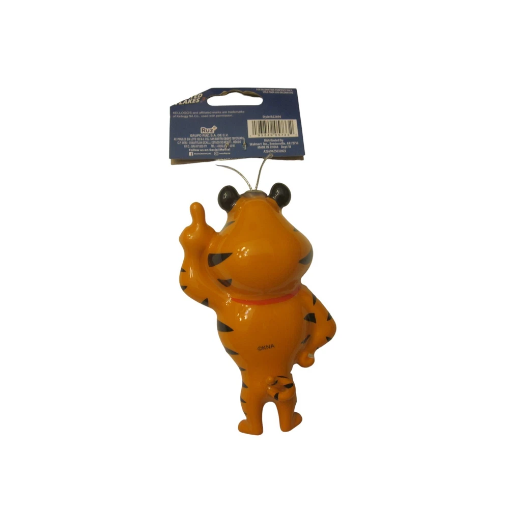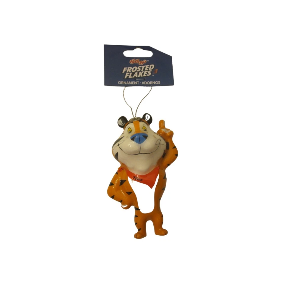 Add some festive cheer to your home decor with this NWT KELLOGG'S FROSTED FLAKES Tony the Tiger Christmas Decoration Ornament. Crafted from durable plastic, this ornament features the beloved Tony the Tiger character from the iconic Frosted Flakes cereal brand. Perfect for holiday and seasonal decor, this ornament will make a great addition to your collection. The ornament is designed with attention to detail, making it a perfect gift for any Kellogg's fan. The high-quality plastic material used in its construction ensures that it will last for many holiday seasons to come. Measures Approximately: 4" x 3" x 1.5" Smoke free/pet free environment 240103