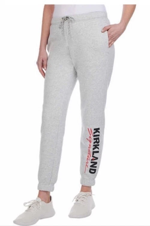 Kirkland Signature Ladies Women Logo Jogger Color: Gray NWT ( NEW WITH TAGS ) Features: • Kirkland Signature ™ • Colors: Gray • Relaxed fit • Side pockets • External drawstring • Kirkland Signature ™M logo on left leg • Made in China Content: • 66% Cotton 34% Polyester • Approximately 320 GSM • Heavyweight Sizing: • Women/Ladies Sizes: XS, S, M, L, XL, XXL • Size conversion: XS = 0-2 S = 4-6 M = 8-10 | L = 12-14 | XL = 16 | XXL = 18 • XS Inseam = 28.5" • S-XXL Inseam = 29" • Model is 5'9"wearing size Small • Model is 5'10 wearing size XXL • Size subject to availability Care Instructions: • Turn garment inside out • Machine wash cold with like colors • Only non-chlorine bleach when needed • Tumble dry low • Cool iron if needed • Do not iron on decoration • Do not dry-clean