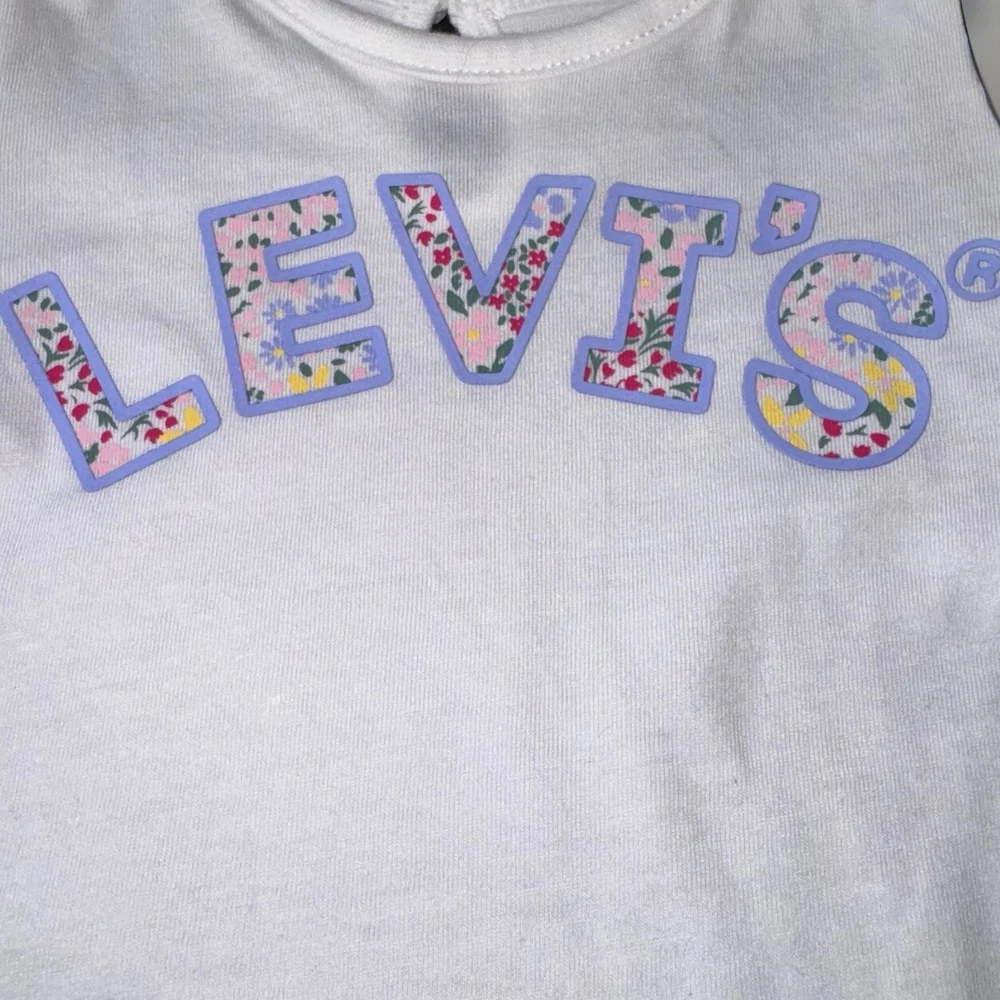 NWT Levi’s Baby Size 6 Months White T-shirt Colorful Logo Bright Puffy Sleeves Ships next business day Smoke free home New with tags, no issues Originally came as a 2 piece but this is just the t-shirt This Levi's Baby T-shirt is size 6 months with a round neck and short, puffy sleeves. The shirt features a colorful logo on the front, adding a playful touch to the classic white design. Made from a blend of polyester and cotton, the fabric is lightweight and breathable, ensuring comfort for the little one. This easy-care T-shirt is ideal for everyday wear and is suitable for both baby boys and girls. Perfect for adding a pop of color to a baby's wardrobe.