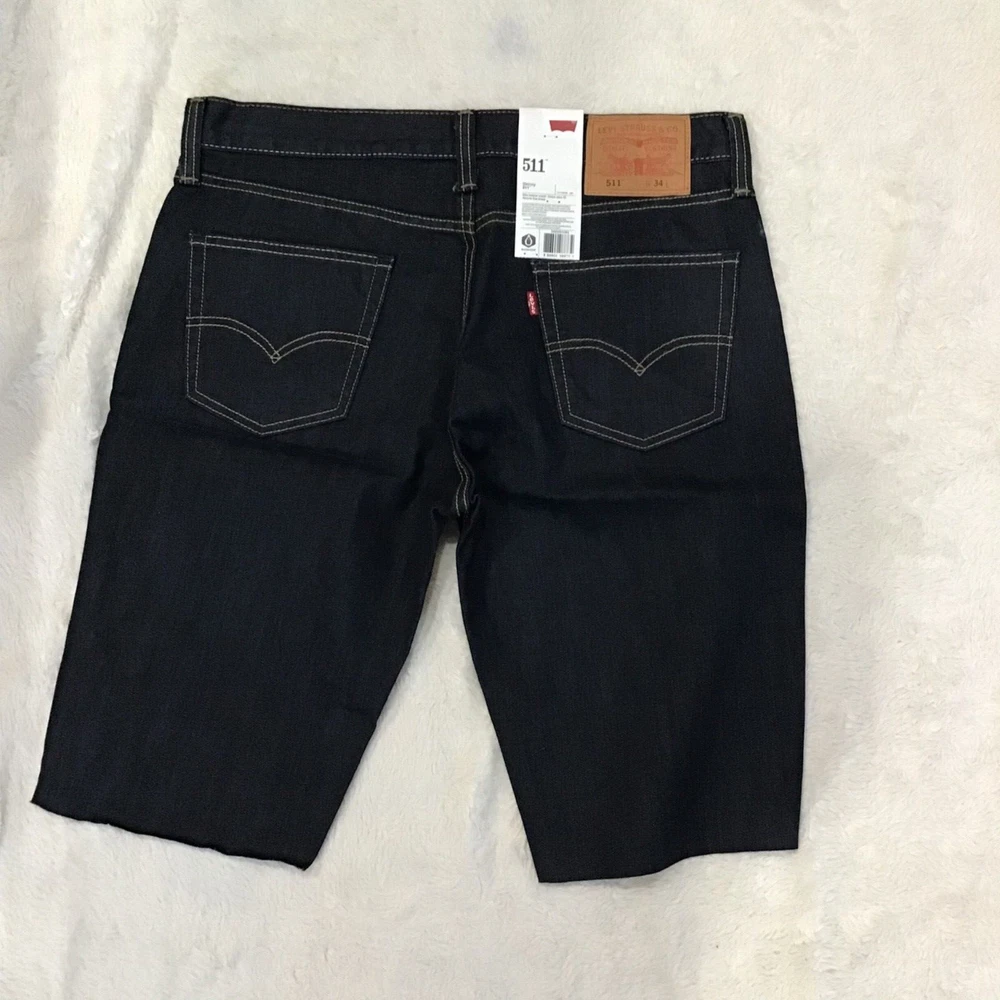 NWT Levi's Men Size 34 Midnight Blue 100% Cotton Denim Cut Off Shorts Skinny