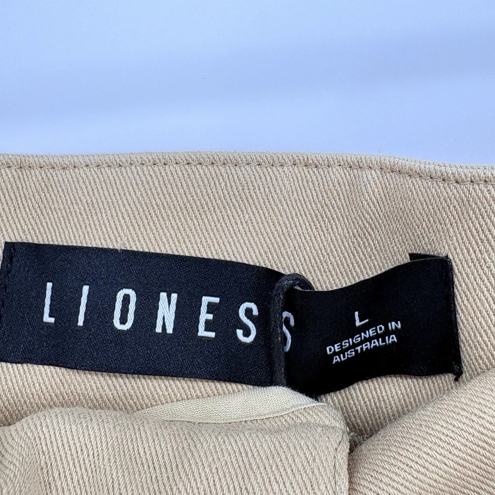 * Brand: Lioness * Size: Large * Color: Camel * Material: Soft, durable fabric with a bit of stretch for comfort * Design: Mini length with a flattering, streamlined fit * Condition: New with tags (NWT) * Measurements: Waist 18" Length 13" * This skirt is a must-have for any fashion-forward wardrobe, offering effortless style for any occasion. Fast Shipping