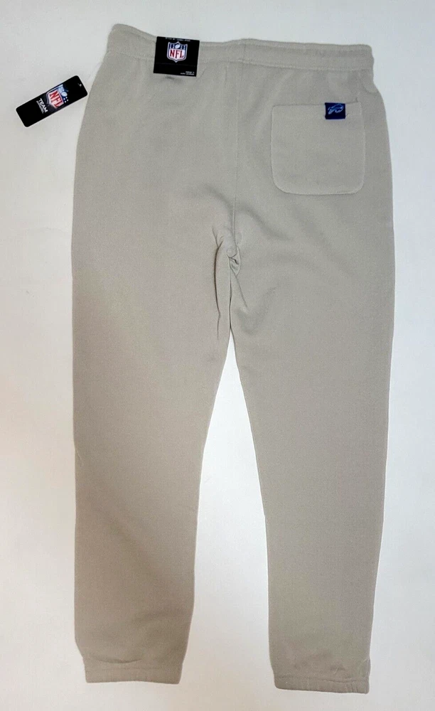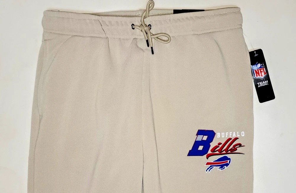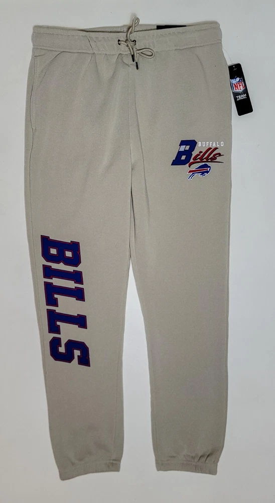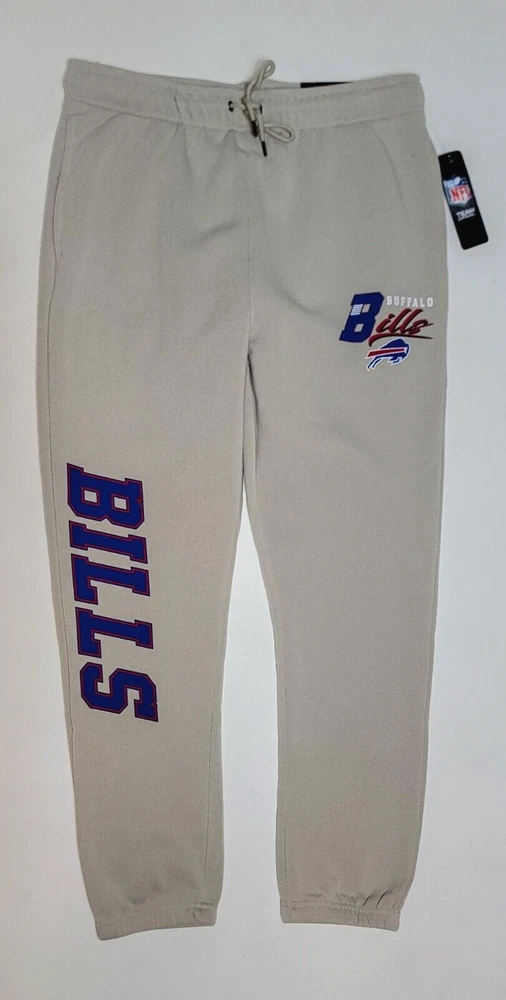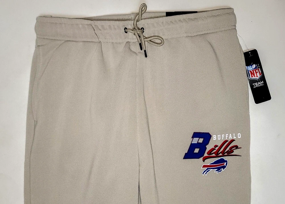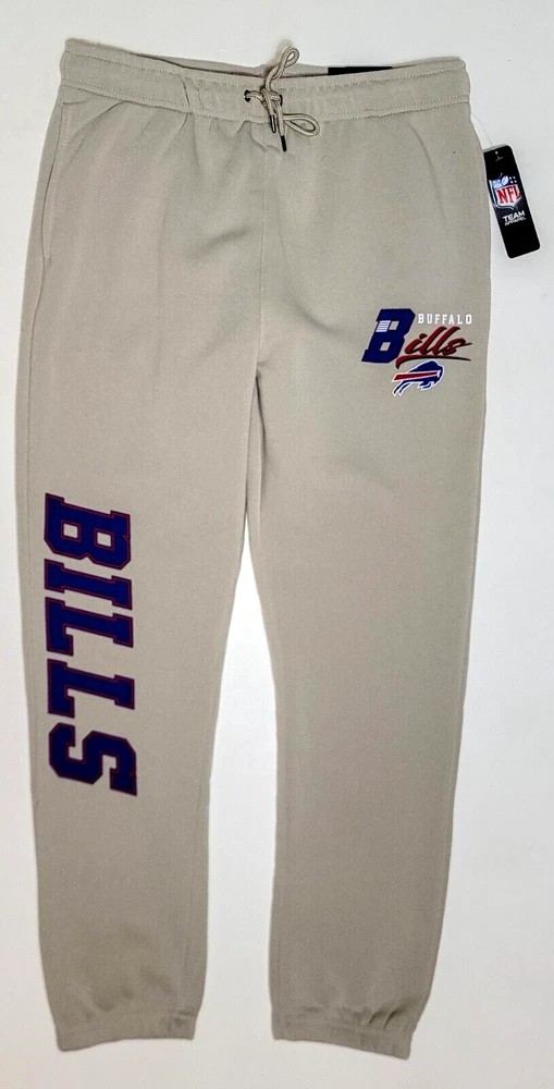 *** Brand New with Tags. 100% Authentic Officially Licensed Merch. With Original NFL Tags And Holograms. * ** Buffalo Bills NFL Team Branded Prmium Fleece Jogger Banded Hem Fleece Jogger Sweatpants Color: Sand with Red/White/Blue Graphics Material: 100% Polyester MSRP: $74.99 Product Details Nike Sportswear Club Fleece Suit up comfortably for a day spent kicking back while showcasing your love for the Bills with these Premium Fleece sweatpants from NFL Teal Apparel Branded. These bottoms are perfect for lounging around your home or taking in the action at the game. Between the undeniable team graphics, elastic waistband and comfortable fleece lining, these are sure to be your favorite Buffalo Bills pants in your casual collection. Soft Comfort Heavyweight Brushed-back fleece fabric feels soft and smooth. Elastic waistband with an adjustable drawcord lets you personalize the fit. Standard fit for a relaxed, easy feel Screen print graphics Two side pockets One Back Pocket Elastic waistband Fleece lining Moisture Wicking Material: 100% Polyester Machine wash, tumble dry low Officially licensed ATTENTION: PLEASE READ THE ENTIRE DESCRIPTION AND VIEW ALL PHOTOS BEFORE PROCEEDING WITH THE BUY IT NOW OPTION. Store Policy ** Photos are the exact product in this auction! 100% Authentic. Stored in a Pet Free Environment. Please familiarize yourself with the sizing of Shirts, Sneakers and Caps before buying to ensure you are buying the correct size. There are no returns accepted for fit. Once tried on, these items are no longer considered Deadstock ** ** Once photographed, all products are sealed into a new polybag and stored in a dust, odor, pet, and smoke free environment ready to be shipped out Any listed pair of sneakers that is over 8 years old may or may not be suitable for wear. Those items should be considered wear at your own risk. **