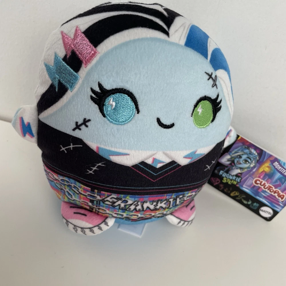 New with tags! See pictures for details, and contact me with any questions. This Monster High Cuutopia Frankie Stein Squishie Plush toy from Mattel is a must-have for any fan of the popular character family. The 5" mini plush toy features a blue color and is perfect for collectors and kids alike. Whether you're looking to add to your collection or just want a cute and squishy toy to play with, this Frankie Stein plush is a great choice. The toy is brand new with tags and is made with high-quality materials. Its size and soft texture make it a great companion for children and a great display piece for collectors. Get your hands on this Monster High Cuutopia Frankie Stein Squishie Plush toy today!