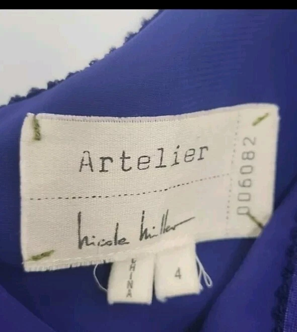 This stunning Nicole Miller Artelier silk dress is perfect for any occasion. The deep purple color and one-shoulder neckline add a touch of elegance to this mini dress, while the open sleeves and short length keep it playful and on-trend. The dress is made with high-quality silk material, ensuring both comfort and luxury. This dress is a size 4 and fits regular size types for women. Its brand, Nicole Miller, is well-known for creating high-end fashion that is both stylish and timeless. Perfect for a night out or a special event, this dress is a must-have for any fashion-forward woman's wardrobe. Model is not wearing this exact dress!!