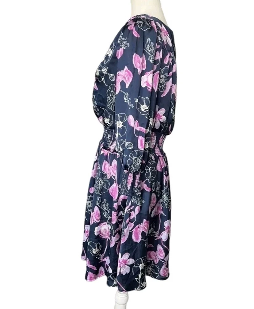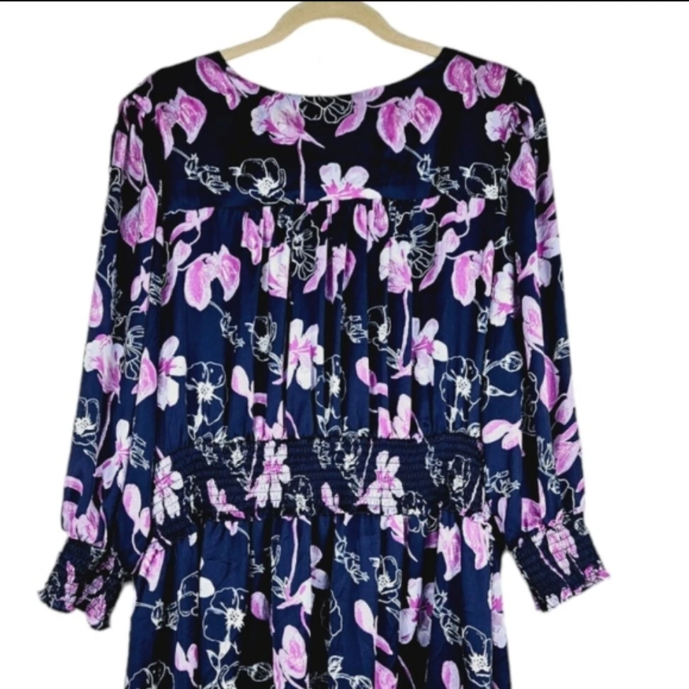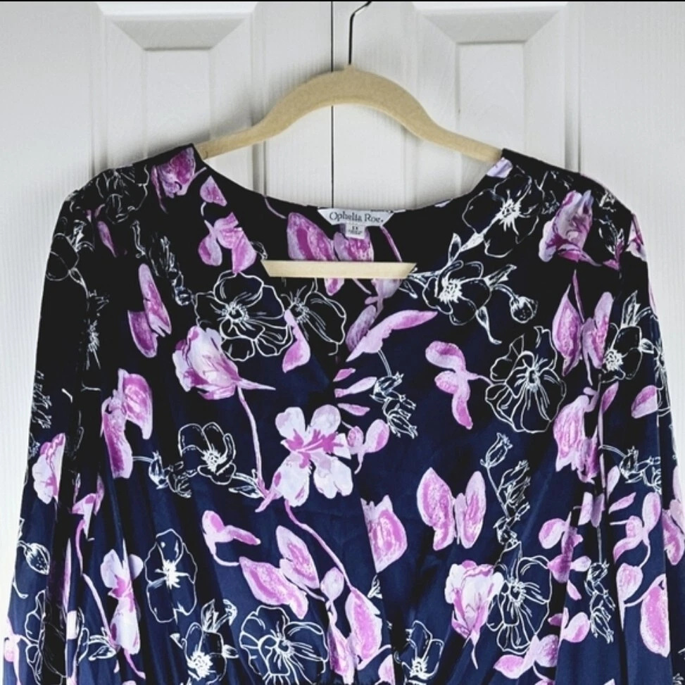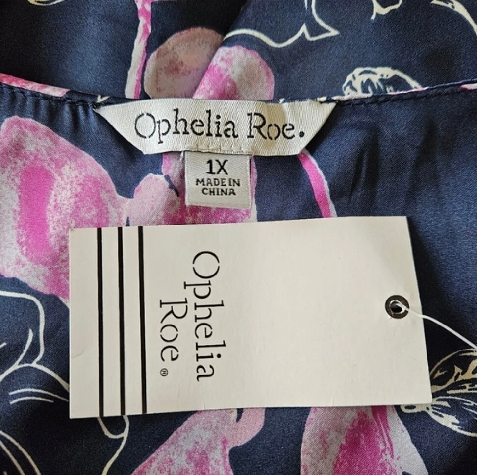 This beautiful navy blue and pink floral dress from Ophelia Roe is perfect for any occasion. The dress is designed for plus size women and is an A-line style with a knee length hem. It features long sleeves and a pullover closure, making it easy to wear. The dress is made of high-quality polyester material that is both comfortable and durable. The dress is perfect for anyone who loves flowers and wants to add a touch of elegance to their wardrobe. Whether you're going to a wedding, a party, or just out for a casual lunch with friends, this dress is sure to turn heads. Gathered at shoulders and sleeves. Silky feel with v-neck (hidden snap for more closed or open neck). New with tags 3/4 length smocked sleeves Stretchy smocked waist Lined 100% Polyester Plus size 1X _______________________________ * Questions are always welcomed; offers considered on most items * Smoke-free, pet friendly home * Items are shipped fast, next day. Bundle discount on shipping. * eBay return guarantee if item is not as described