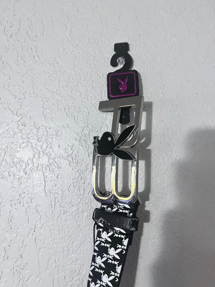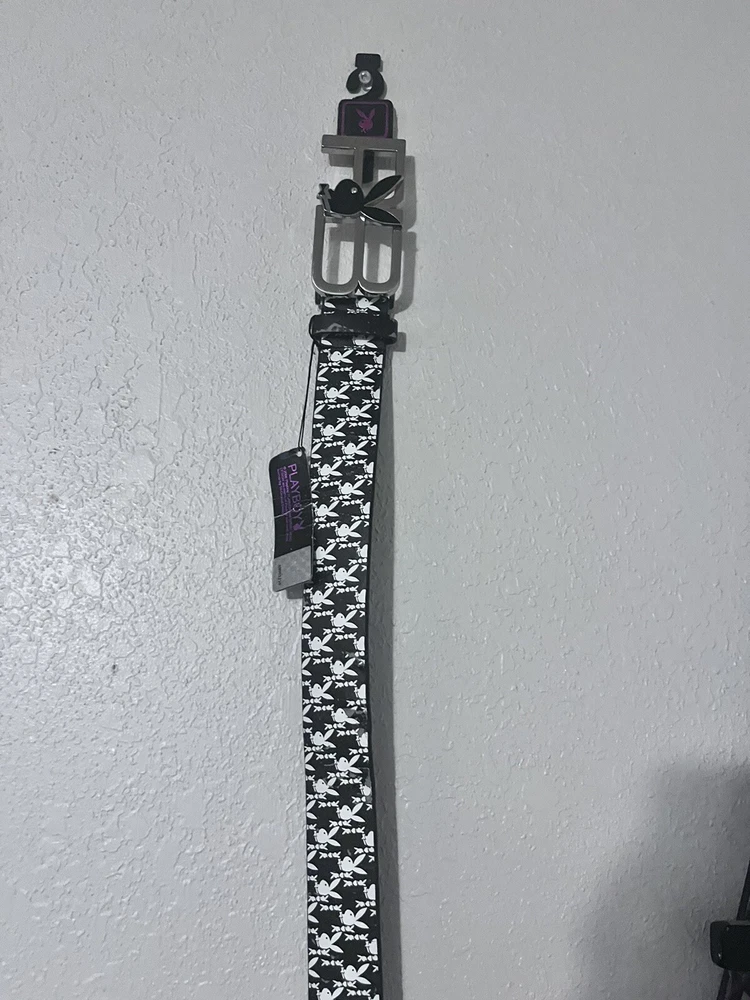 NWT Playboy belt and. Buckle black and white bunny design PB buckle size Medium Elevate your wardrobe with this NWT Playboy belt and buckle, featuring a stylish black and white bunny design. The medium-sized belt is perfect for any occasion and complements any outfit. The vintage-inspired buckle adds a touch of designer flair to this must-have accessory. Crafted with high-quality materials, this belt is durable and built to last. The Playboy brand is known for its iconic bunny logo, making this belt a statement piece that will make you stand out from the crowd. Add this belt to your collection today and make a bold fashion statement that will turn heads.