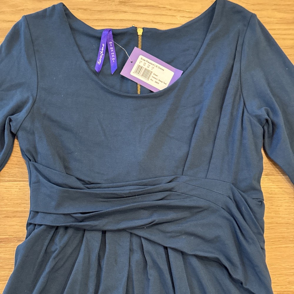 New with tags, this dress is a beautiful deep red color with a gold zipper in the back. It has a lined top and is excellent quality. Please reach out with any questions.