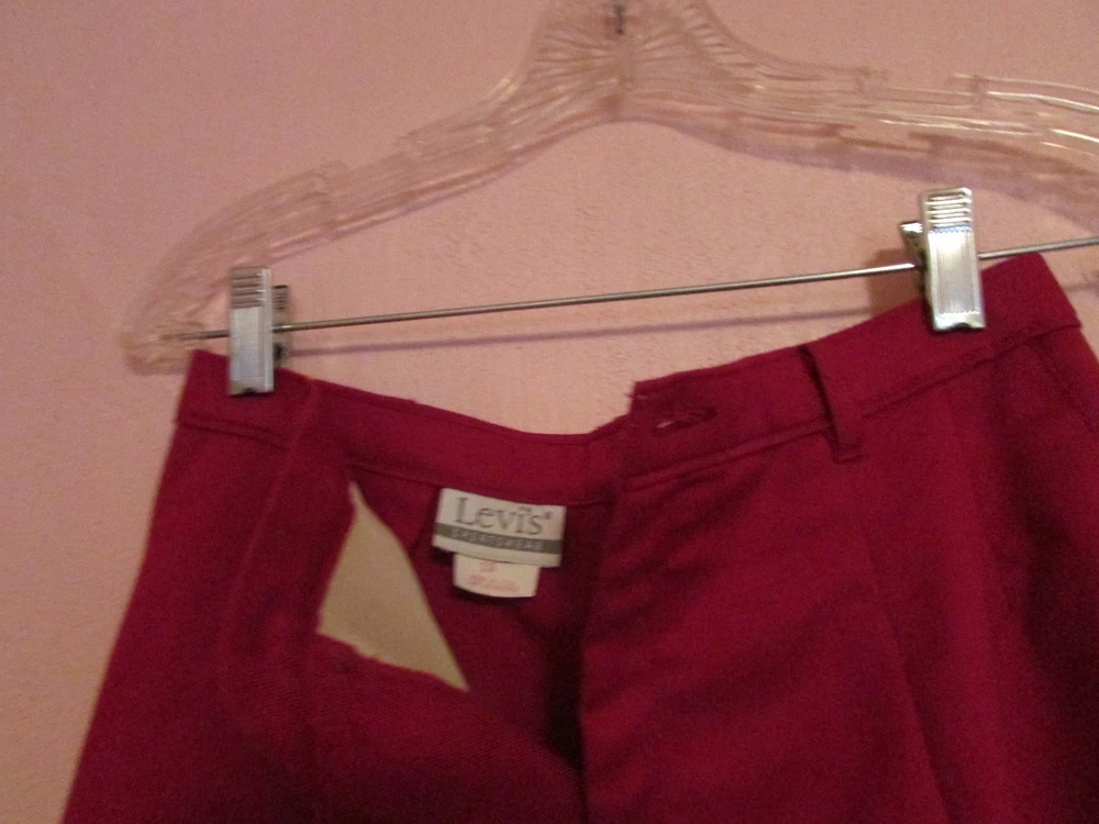 Official PayPal Conversion Rates Add Currency Converter To Your Items SquareTrade 22 ESTATE SALE ITEM THAT IS STILL NEW WITH TAGS, NEVER WORN. VINTAGE WOMEN'S LEVI'S CASUAL PANTS SIZE 10 (27" x 29"). RED COLOR WITH ZIP FRONT, RED BUTTON CLOSURE. 2 FRONT POCKETS, SLIM BELT LOOPS. 65% DACRON POLYESTER, 35% COMBED COTTON. TAG DATED 1988, KOHL'S DEPARTMENT STORE PRICE $29.99. SHIPS FREE PRIORITY MAIL. MY EBAY STORE FEATURES WOMEN'S & JUNIORS FRUIT OF THE LOOM, BALI, UNDER ARMOUR, DELTA BURKE, HANES, VICTORIA'S SECRET, JMS, FREDERICK'S OF HOLLYWOOD & MAIDENFORM PANTIES. ALL SIZES & STYLES *************************************************************************************************************************************************************************************************************************************************************** SHIPS WITHIN 24 HOURS OF PAYMENT RECEIVED. DELIVERY CONFIRMATION INCLUDED. IMMEDIATE PAYMENT REQUIRED. Check out my other items ! Lot's of vintage & unique items. Be sure to add me to your favorites list !
