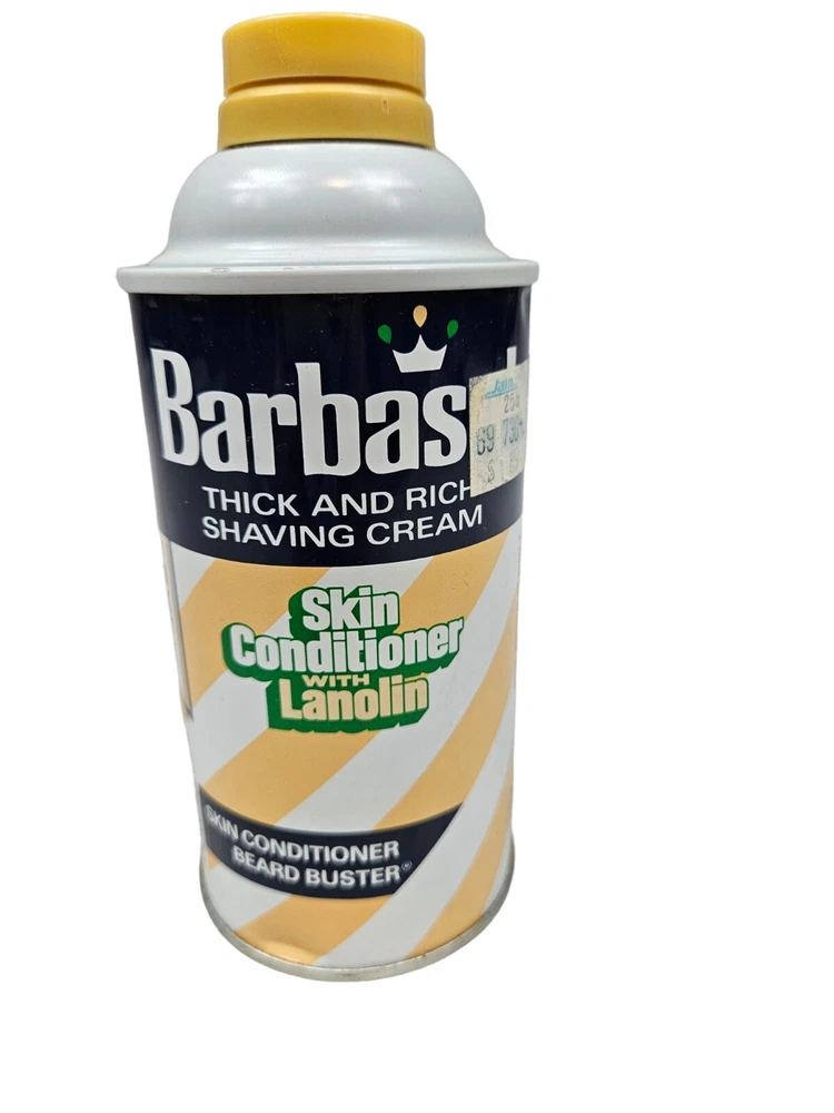 NWT Vintage Barbasol Thick & Rich Shaving Cream Skin Conditioner w Lanolin 11 oz. New NWT Vintage Barbasol Thick & Rich Shaving Cream Skin Conditioner w Lanolin 11 oz Can Discontinued Barbasol Thick & Rick Shaving Cream Beard Buster with Skin Conditioner and Lanolin. Lanolin works by reducing water loss from the skin, similar to petroleum jelly. Very moisturizing. Unisex shaving cream. This item is new and unused.