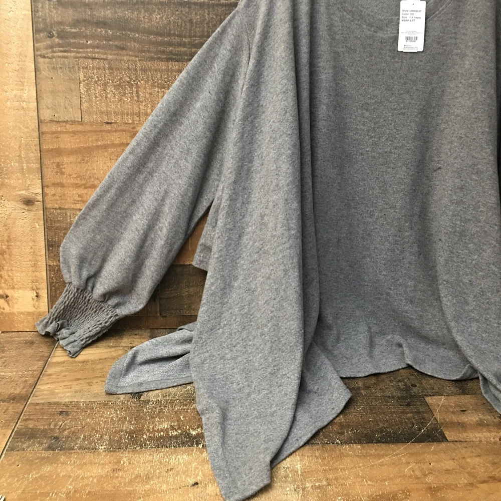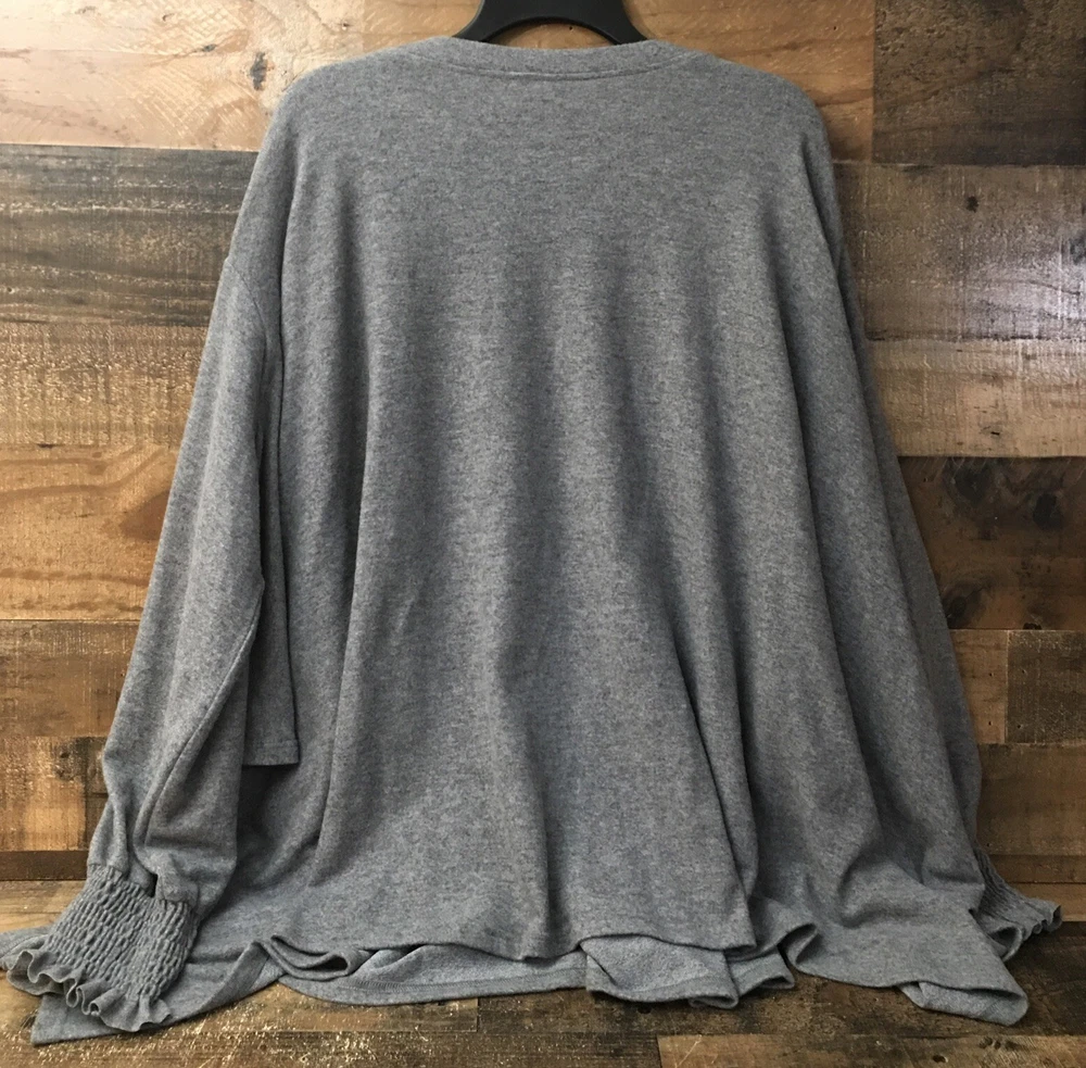 Pit to pit: 30” Shoulder to hem: 34” Two areas on front with dark threading. See last 2 photos.