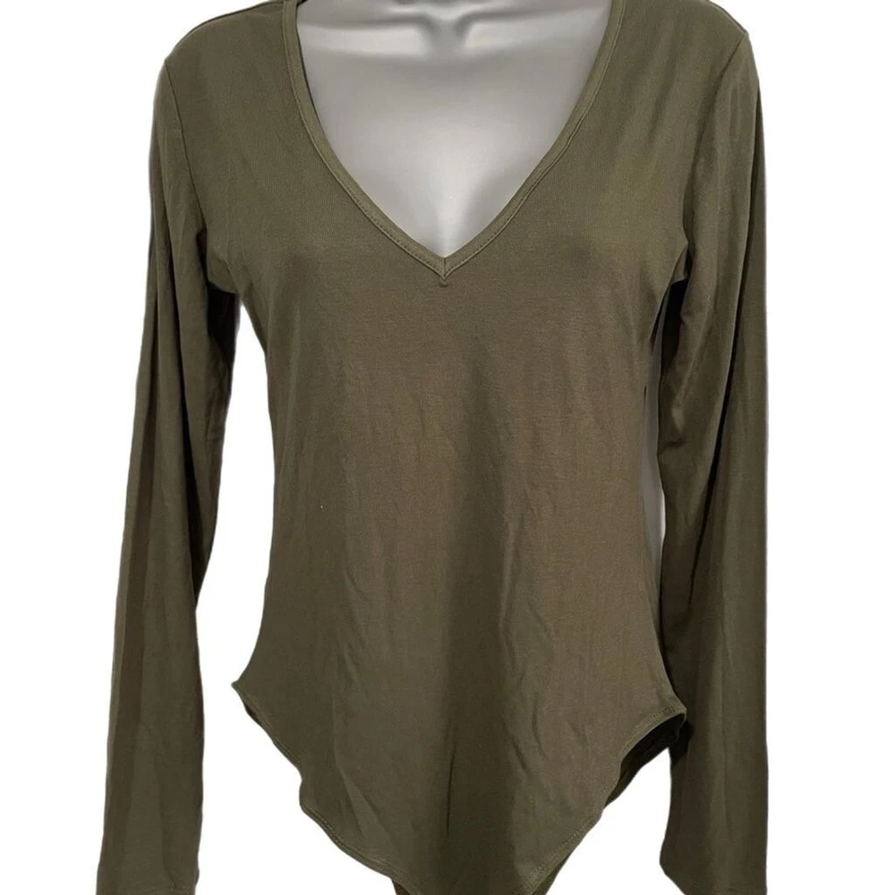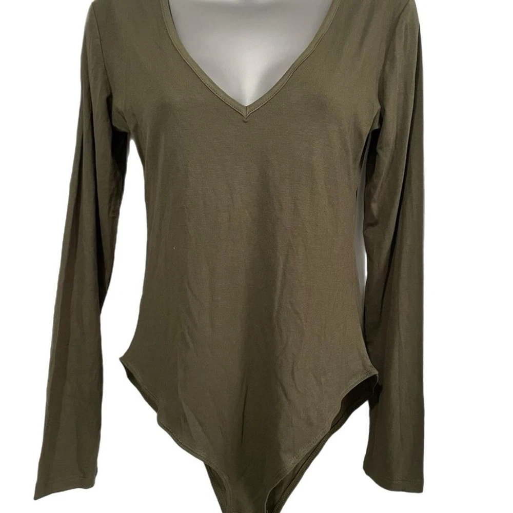 NWT long sleeve body suit with deep v neck. 95% rayon, 5% spandex