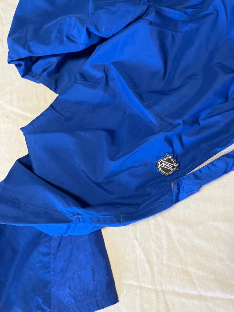 Experience comfort and style with the NY Islanders Reebok Nylon Sweatpants, tailored to fit Men's Size XL. These pants are an ideal choice for those who value both activewear functionality and casual flair. The vibrant blue hue showcases team spirit, while the quality nylon construction ensures durability and ease of movement. Designed for a regular fit, these sweatpants offer ample room without compromising on a sleek silhouette. Whether you're hitting the gym or enjoying a relaxed day out, these versatile pants are equipped to handle a variety of occasions while exuding a laid-back, yet put-together look.